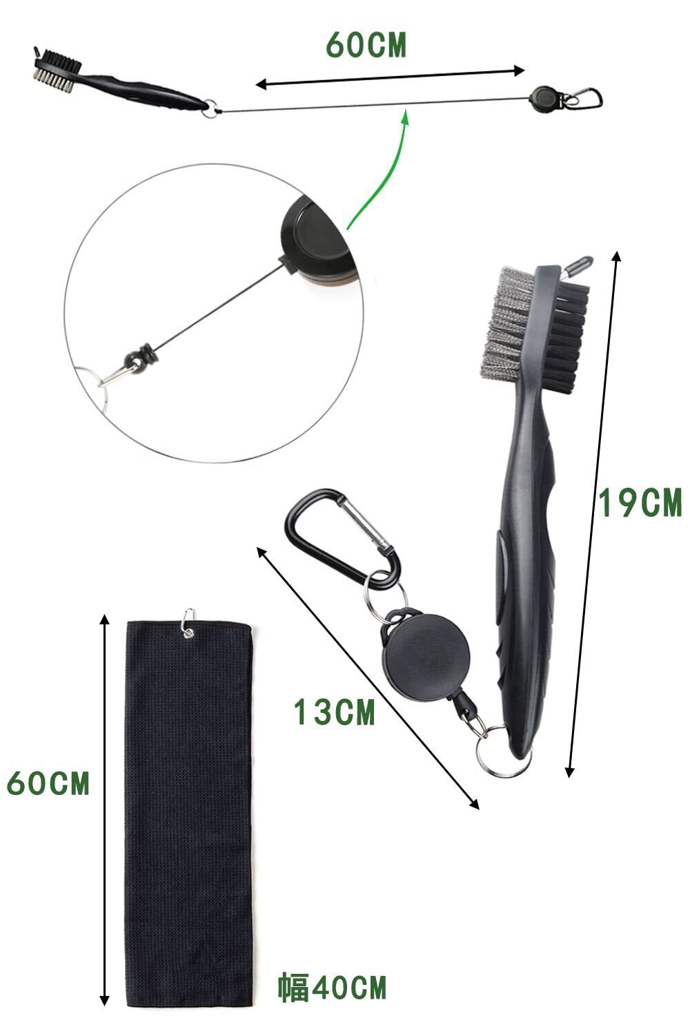 便利さ: このゴルフクリーニングキットは、ゴルフクラブのクリーニングの基本的なニーズを満たすことができます、安全で。カラビナ付くので、持ち運びにとても便利です。伸縮性のあるロープが付きて、掛けたままでも使用しできる。