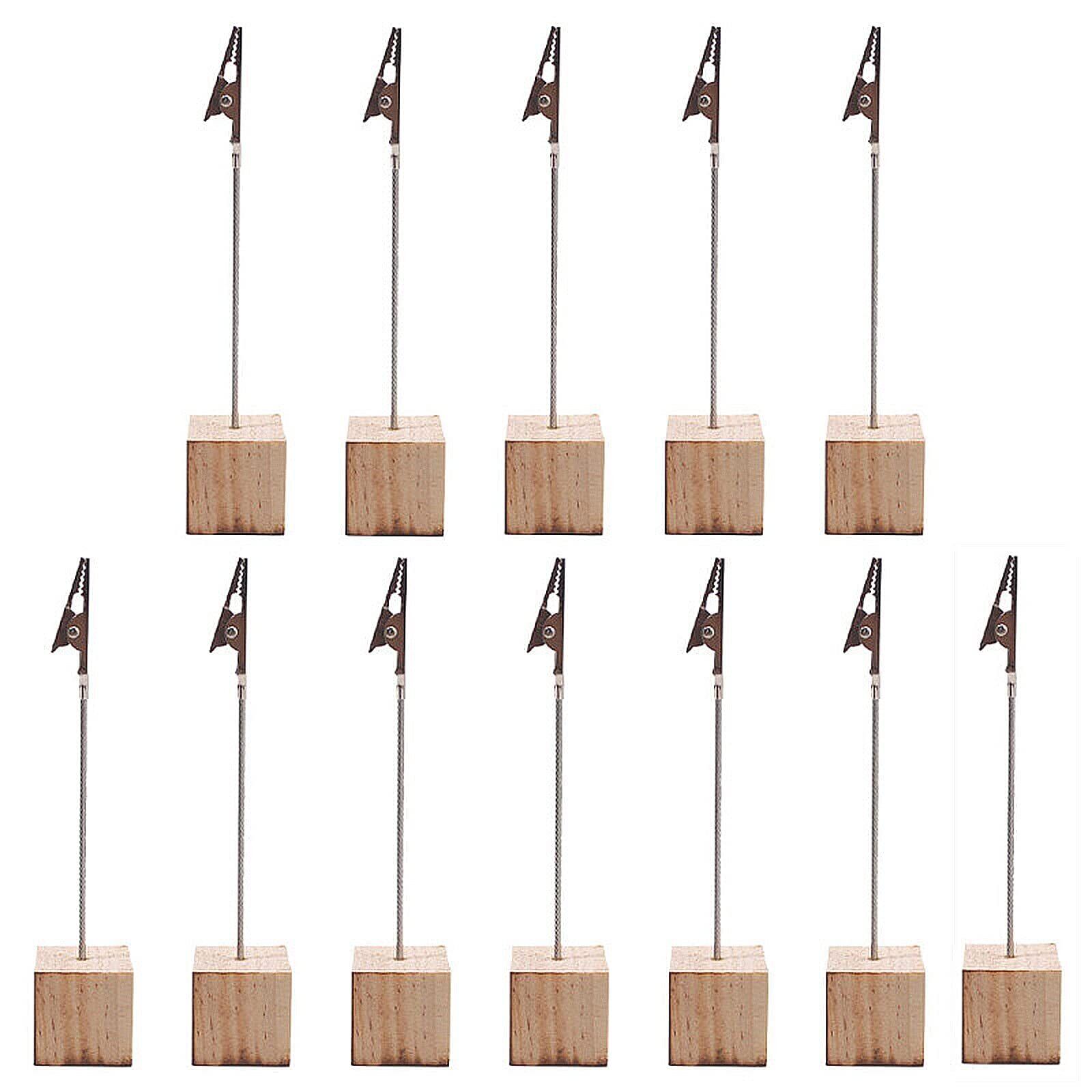 YFFSFDC メモ クリップ スワイヤー 12個セット 木製 カード ホルダー 卓上 スタンド フォトカード ホルダー (木色)
