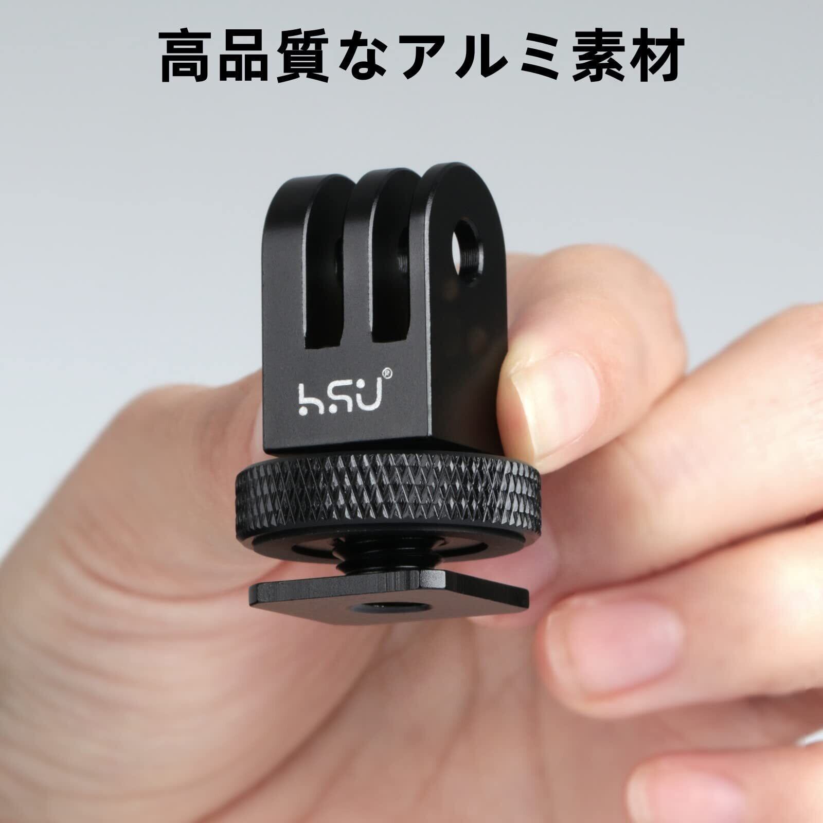 HSU アルミ ホットシューマウントアダプター 1/4穴付き 三脚マウント GoPro Hero13/12/11/10/9/8/7/6/5、dji osmo action 、AKASO/ビデオカメラ/一眼レフ/DSLR対応(ブラック)