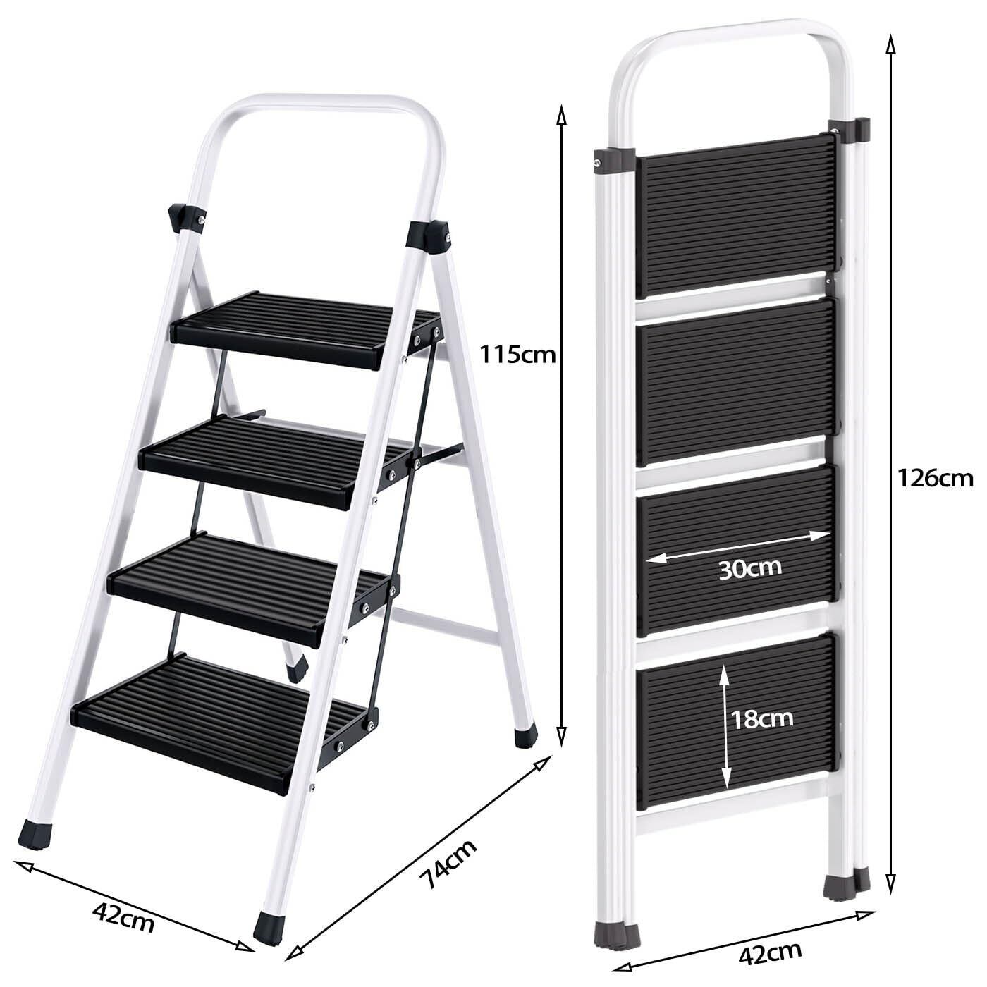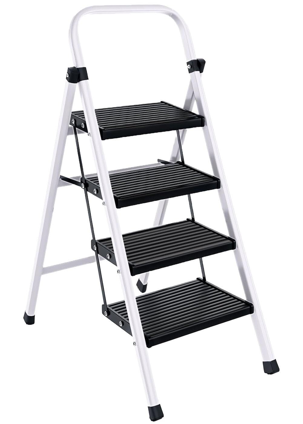 脚立 踏み台 折りたたみ 4段 アルミ製ステップ 手すり付き脚立 おしゃれ ステップ台 スツール キャタツ はしご 梯子 室内 屋外 step ladder ハシゴ 軽量 コンパクト 安全 折り畳み 耐荷重150KG 白 (4 段)