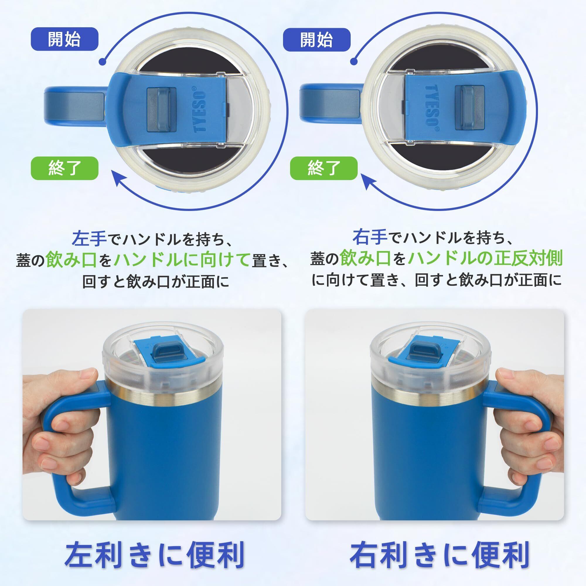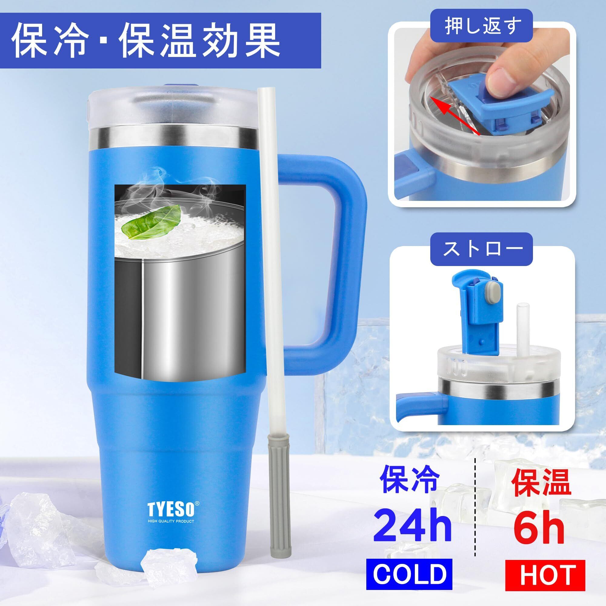TYESO タンブラー 0.9L 水筒 保冷 ステンレスボトル ウォーターボトル ストロー 取っ手付き ジョッキ アウトドア 真空断熱 二重構造 広口 大容量 直飲 女の子 男の子 900ml ブルー