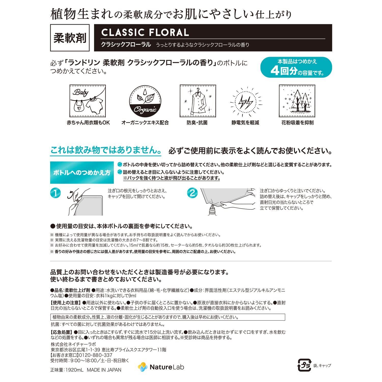 ランドリン 柔軟剤 特大容量 クラシックフローラル 詰め替え 4倍サイズ 1920ml
