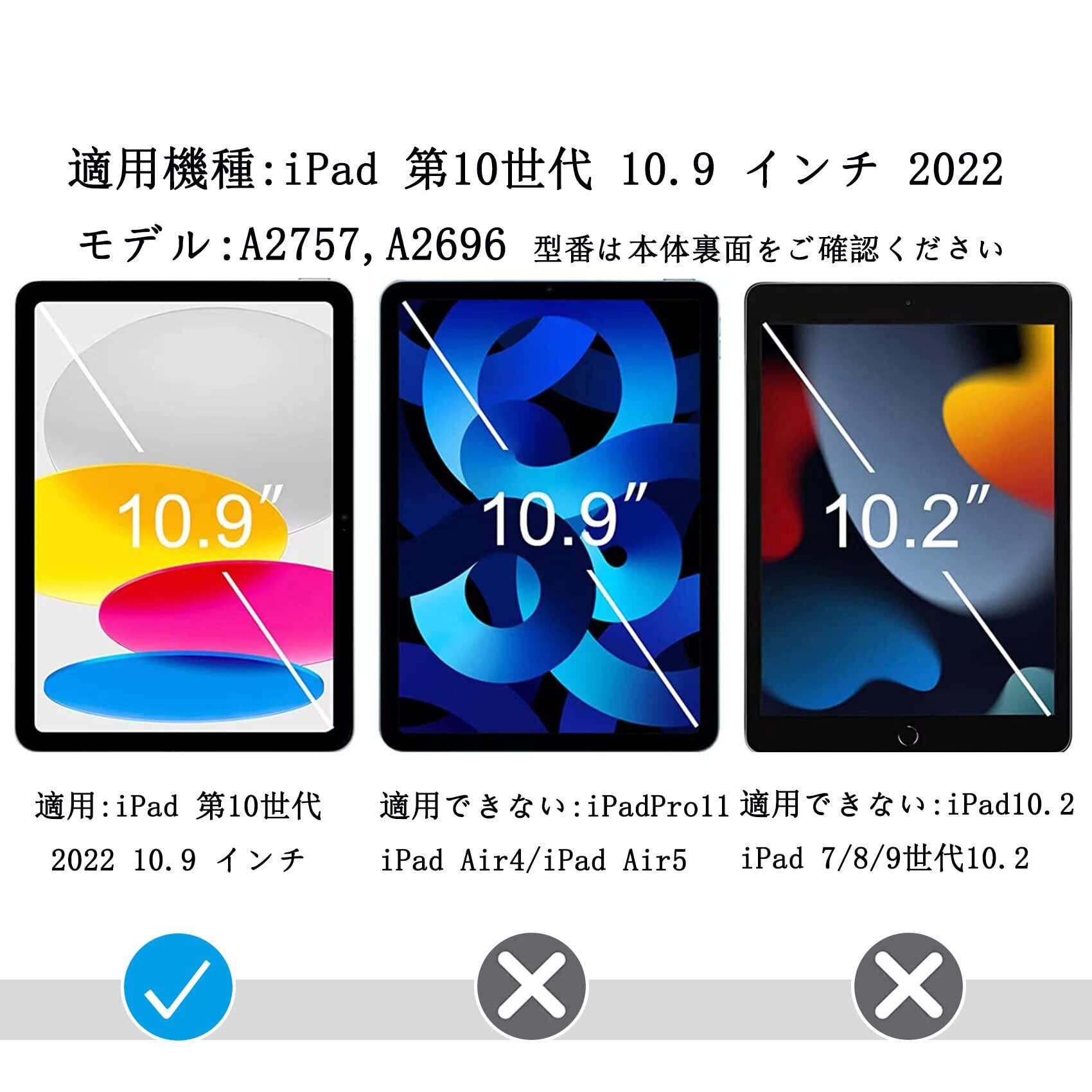 【対応機種】iPad 第10世代 ガラスフィルム(2022年)10.9 インチ 。対応モデル:A2757/A2696。型番は本体裏面をご確認ください。
