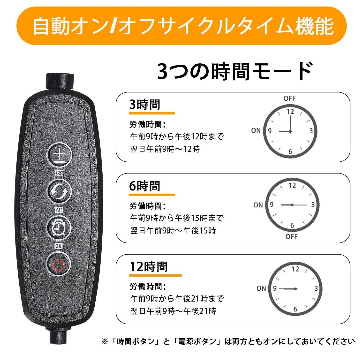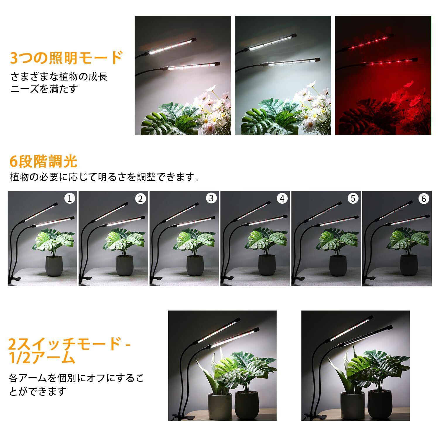 【自動オン/オフタイミング機能】植物育成ライトにはサイクルメモリタイマー機能が付いており、設定に応じて毎日自動的にオン/オフにすることができます: 3/6/12時間、育成ライトは翌日同じ時間に自動的にオンとオフになり、手動操作は不要で、仕事中や休暇中に植物の世話をすることができます。
