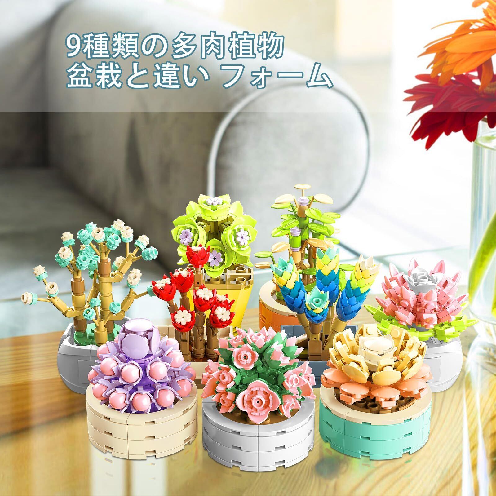 JMBricklayer 花多肉植物ビルディングブロックセット 大人用 20104、9パック 植物コレクション 小さな植物ビルディングブロック、部屋 ホームオフィスの装飾用 花盆栽モデル、女の子 女性への花のギフトアイデア