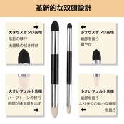 ②黒い先端はスポンジ製、白い先端はフェルト製で、どちらも滑らかなブレンドを実現。さらに、頑丈なABS製のボディは、握りやすさと長寿命、優れた耐久性を兼ね備えています。