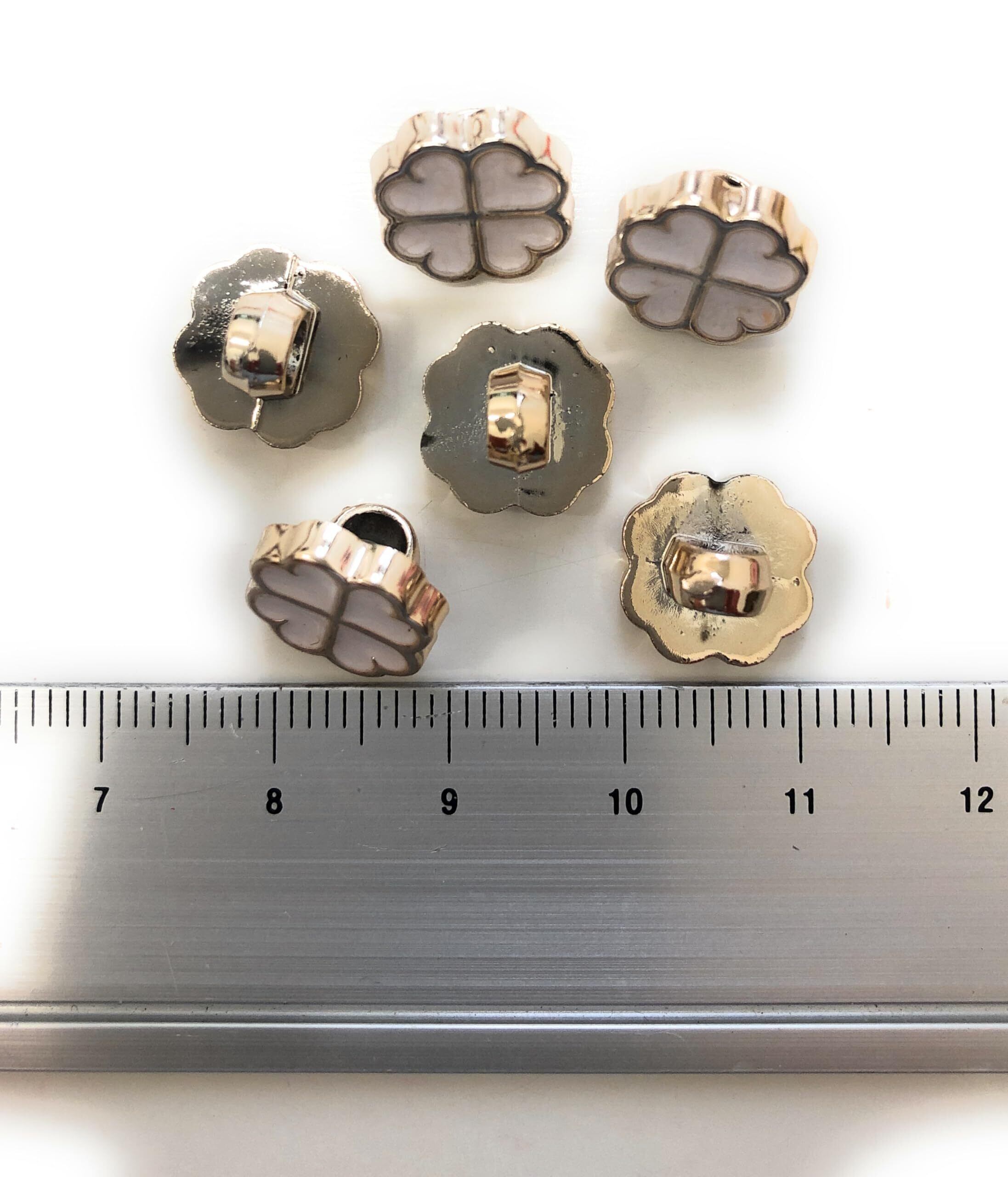 エナメル クローバー の キラキラ した プラスチック シャンクボタン 6個入りです。 ハンドメイド作品の材料にいかがですか