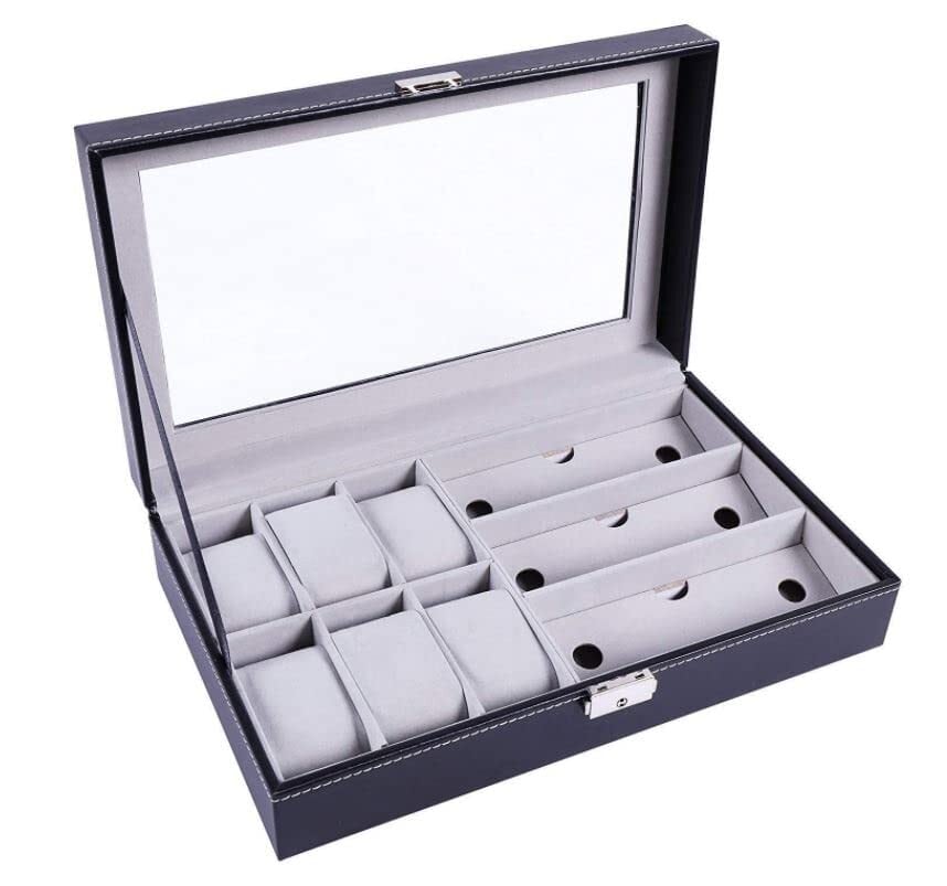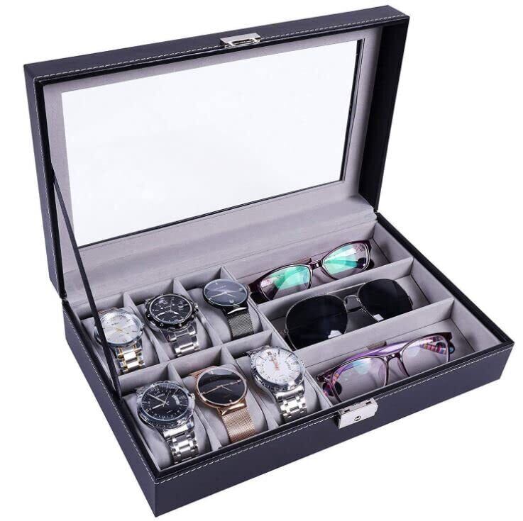 Ansimple 腕時計 メガネ サングラス 収納 ケース 収納ボックス ウォッチ コレクションケース アクセサリー 収納 PU製 (腕時計6本+メガネ3本)