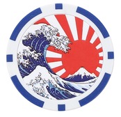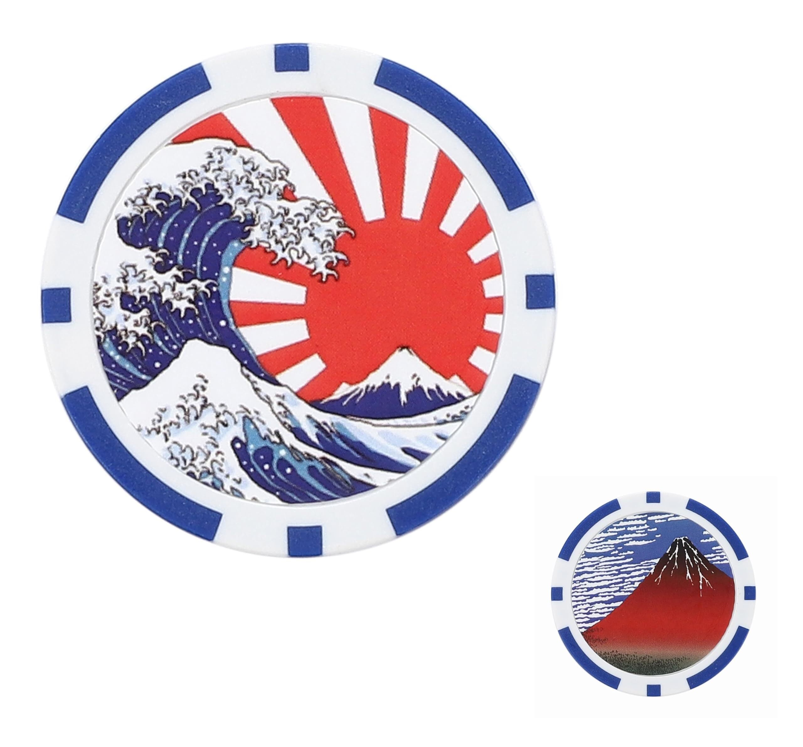 面白 ゴルフマーカー 裏表 両面デザイン 40mm おもしろ カジノチップ風 グリーンマーカー ハットクリップ 対応 (神奈川沖浪裏×赤富士)