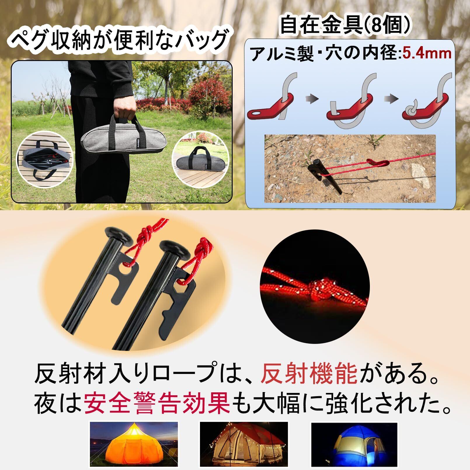 【テントロープ4本付き】テントやターフの設営時に別に購入する必要がない。設営がもっと楽になる。