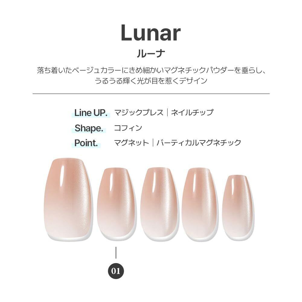 #ルーナ 落ち着いたベージュカラーにきめ細かいマグネチックパウダーを垂らし、うるうる輝く光が目を惹くデザイン。