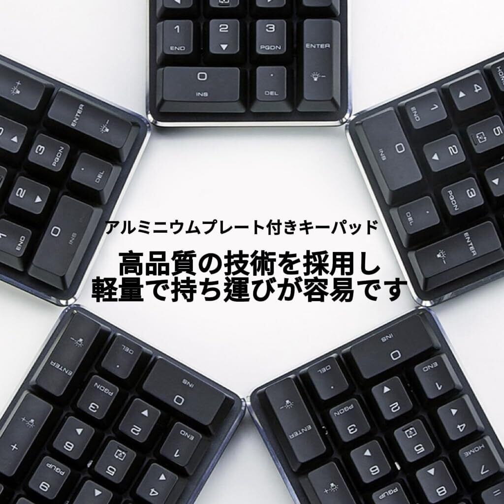 2.NumLock非連動。独立したテンキーを持たず「数値入力モード」を搭載しているノートPCに繋いだ際、ノートPC側のNumLockと本製品のNumLockは連動しません。また、表計算ソフトで使用する際に便利な「ESC」「Tab」「=」「BackSpace」キーを装備。