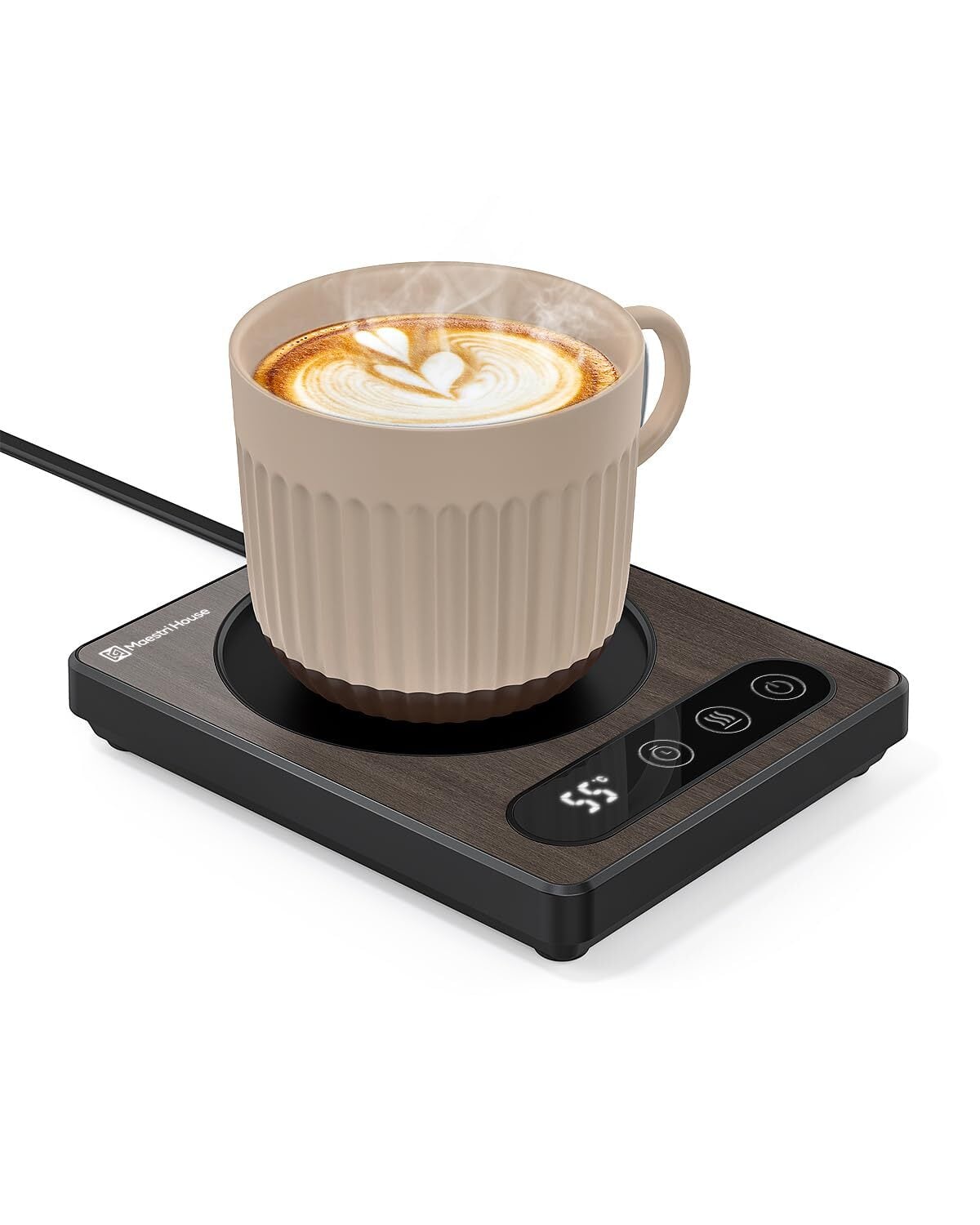 MaestriHouse カップウォーマー コーヒーコースター 12段階タイマー 9段階温度調節 40℃-80℃保温可能 自動電源切れ 予約電源オン 大きいディスプレイ 保温力が高い クリスマスギフト 春秋冬用 在宅/オフィス/寝室用 お茶/ミルク/コーヒー保温用 (クルミ色)
