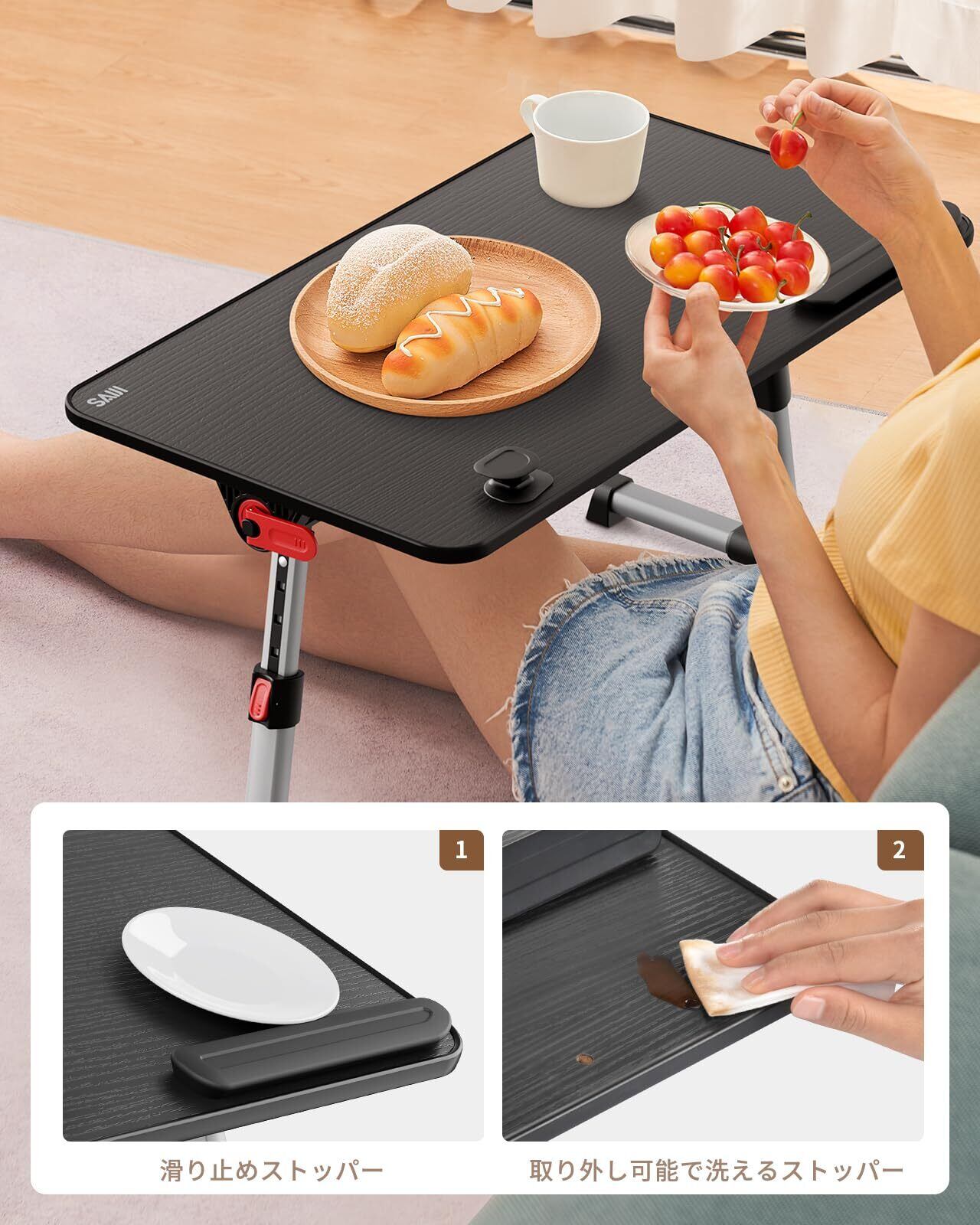 SAIJI ベッド デスク 折りたたみテーブル ベッドテーブル PCパソコンテーブル ローテーブル オフィスデスク ラップデスク 腕保護 高さ 角度調節可能 軽量 勉強 一人暮らし40kg荷重 (ブラック)