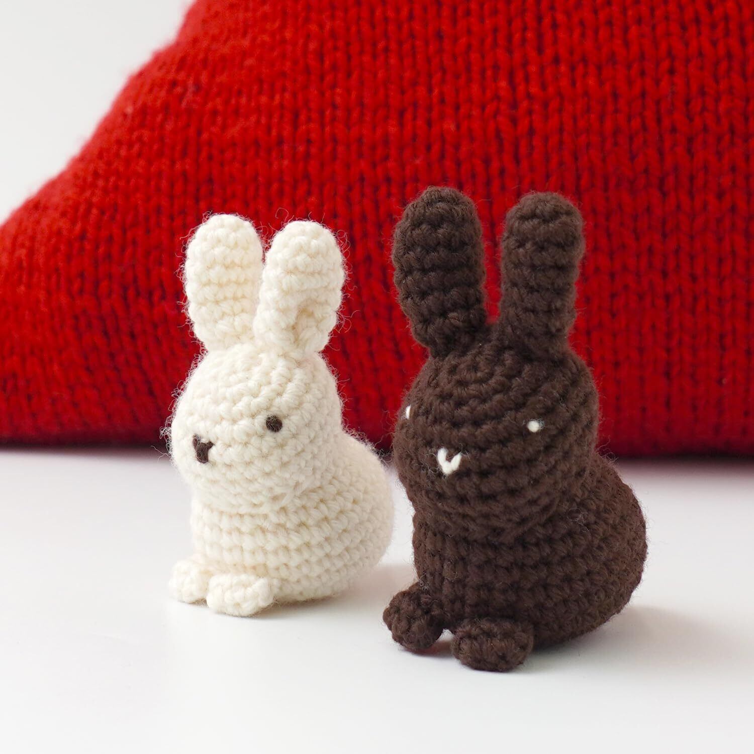 あみぐるみ作家ミドリノクマさんデザイン。2023年の干支、卯の編みぐるみキットです。このキットで白と茶のウサギさんが作れます。手のひらサイズで、丸いフォルムがかわいいですよ。