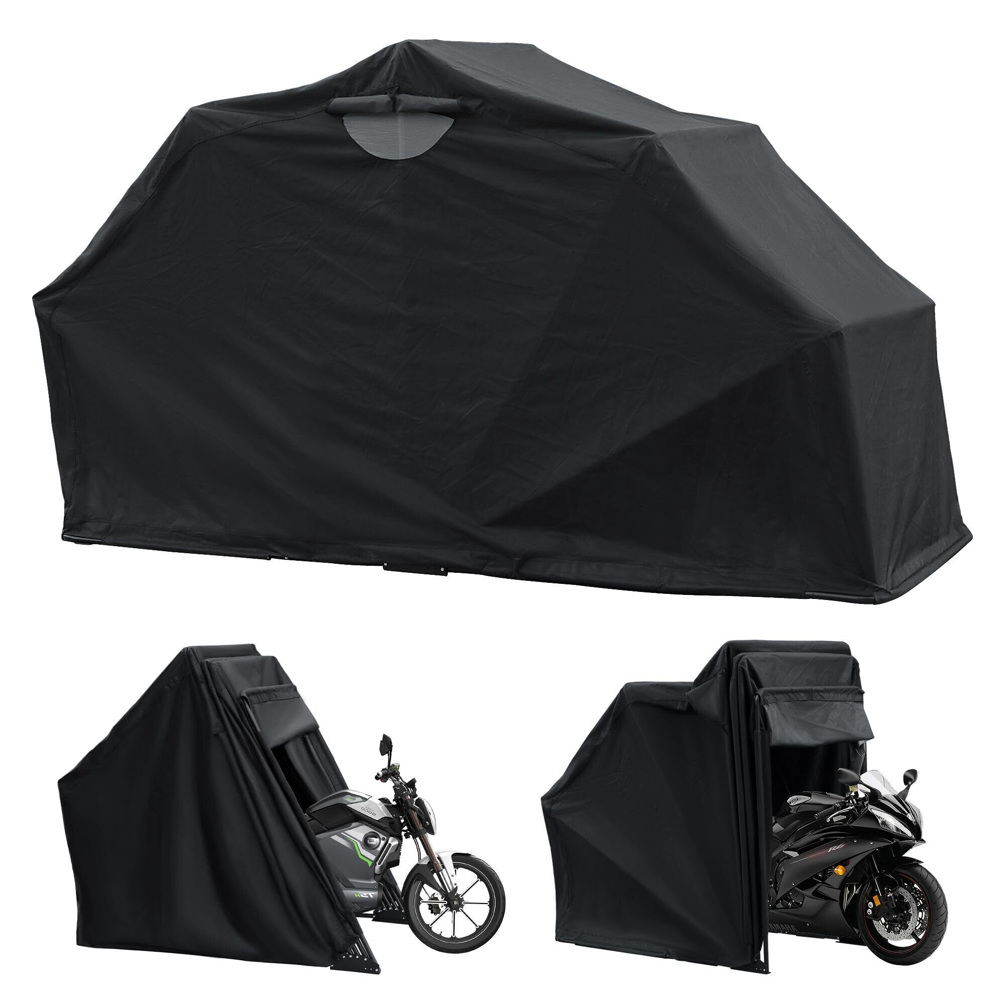 Alebert バイクガレージ 自転車テント サイクルハウス サイクルガレージ サイクルポート 屋外 バイク収納 ガレージテント バイクシェルター 屋根 高耐久鋼フレーム UV加工シート・遮熱・撥水加工 雨よけ 家庭・アウトドア・戸外用 ブラック