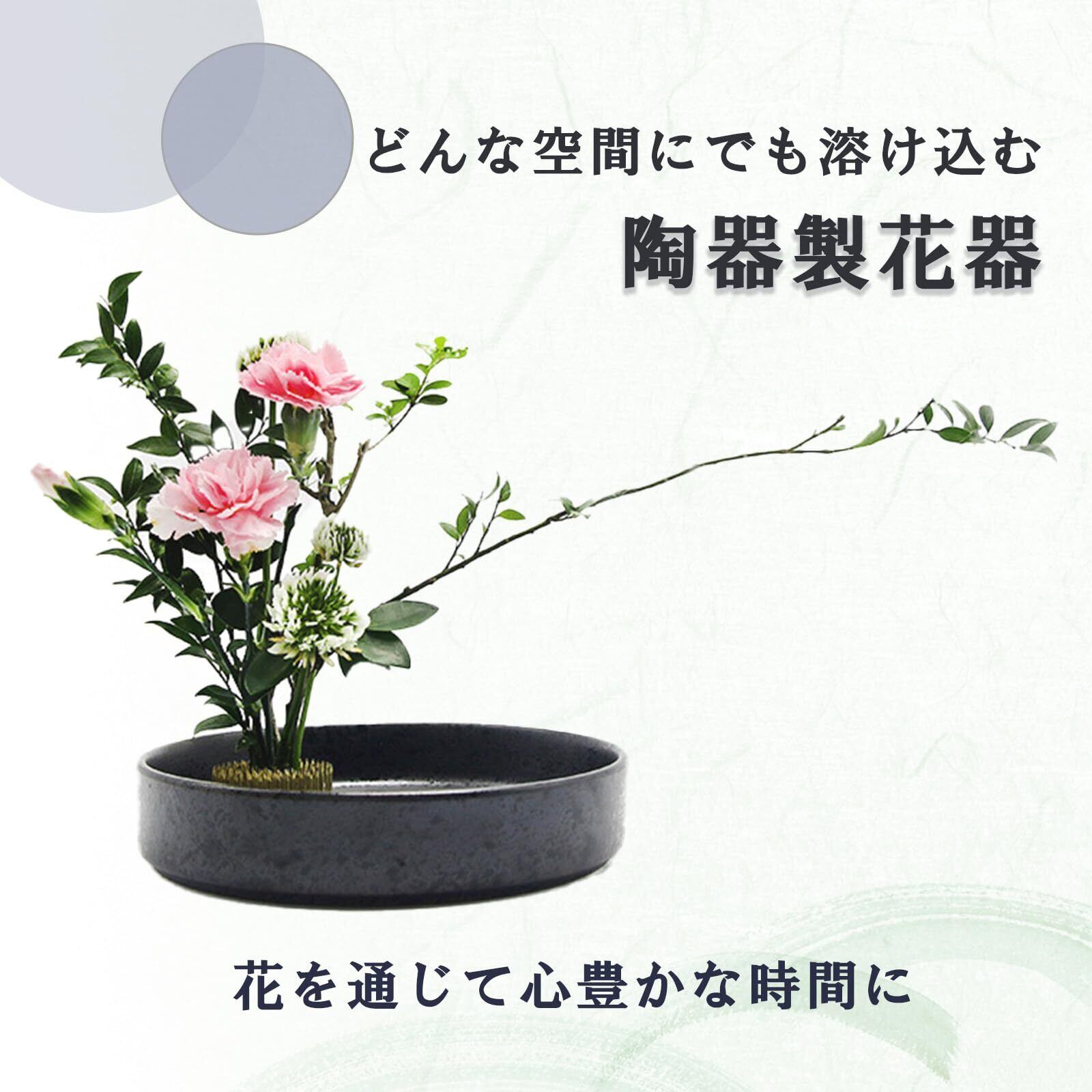 S.T.S.G 花器 生花 華道 水盤 花瓶 和風 フラワーアレンジメント フラワーベース 陶器 生け花 和室 花入れ (深海)