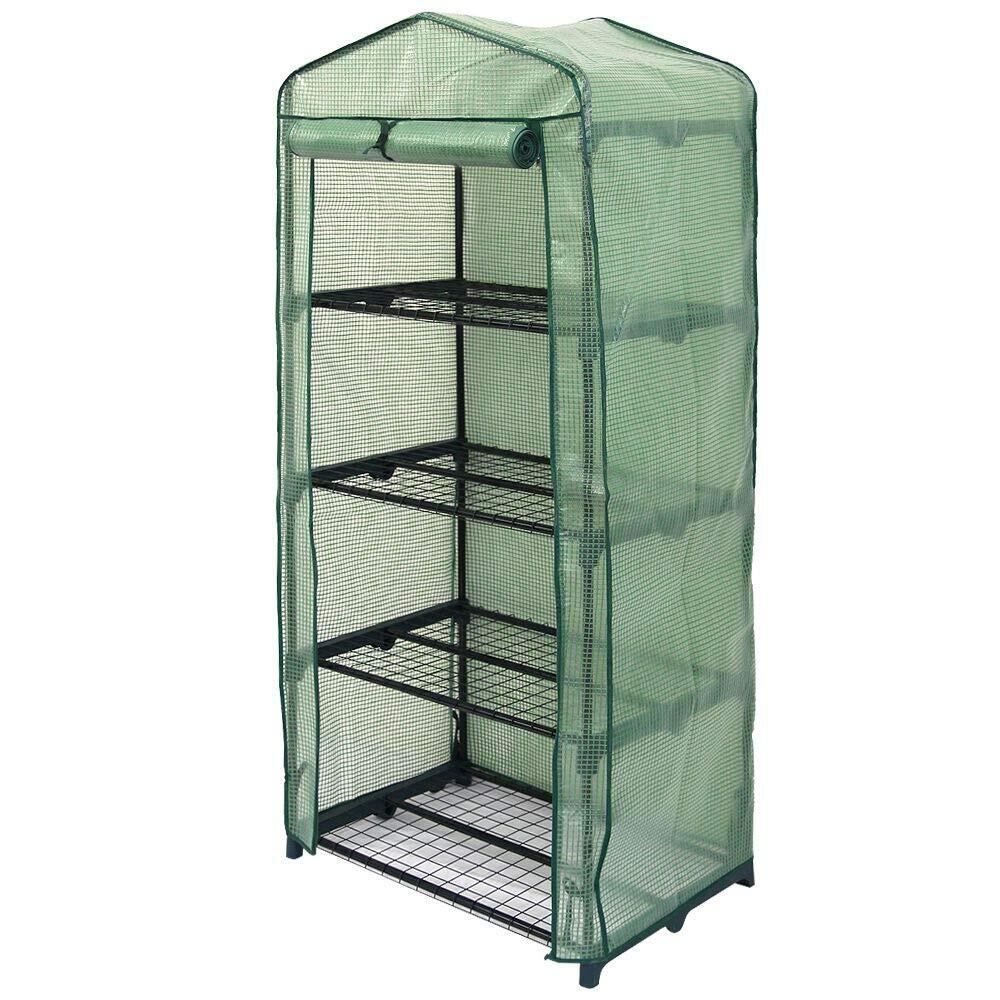 WEIMALL ビニールハウス ベランダ 小型 温室 ガーデンハウス 4段 ビニールカバー付き ガーデンラック フラワースタンド 植物 家庭菜園 W69×D49×H158cm 【AAH002GR】