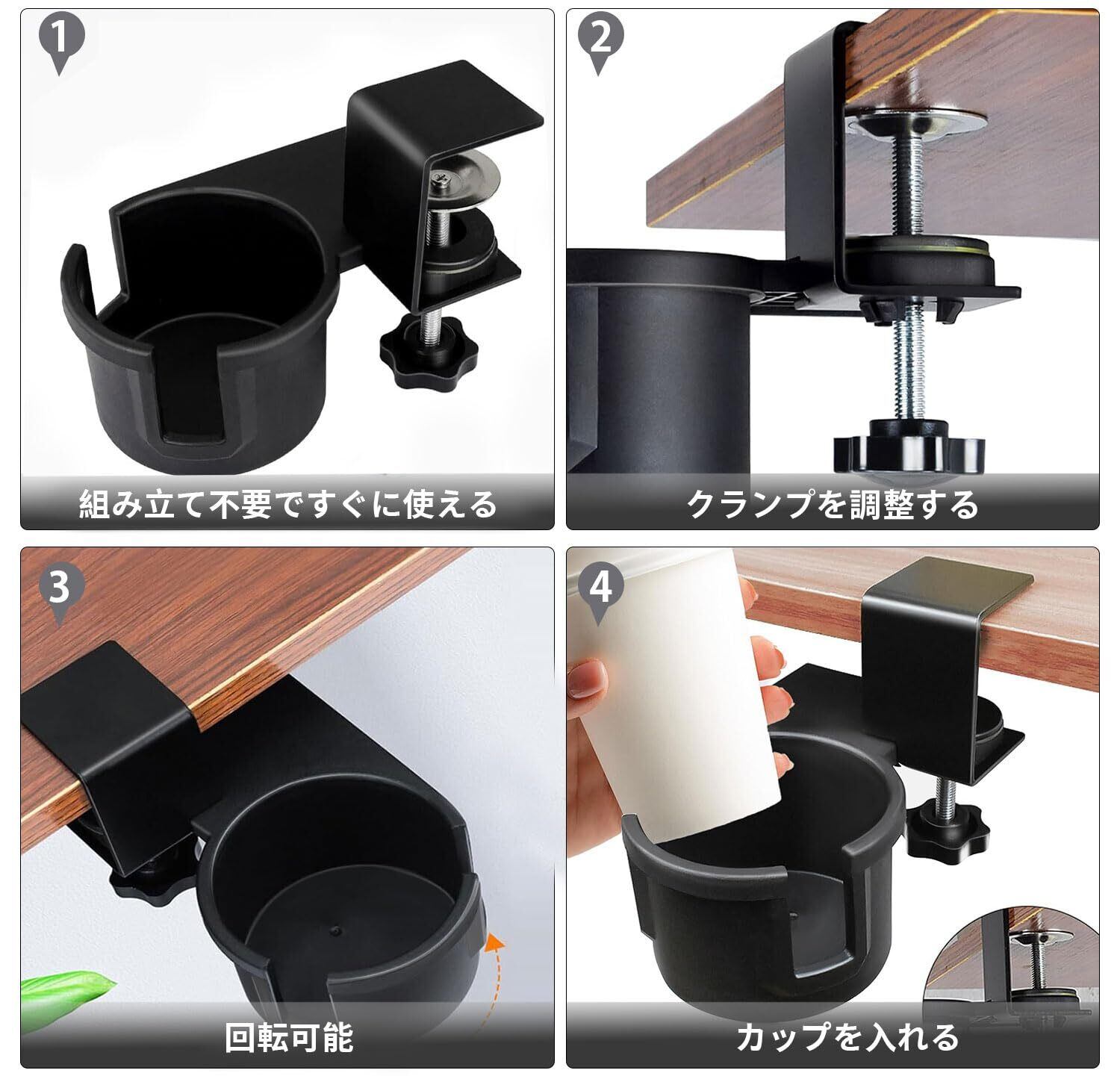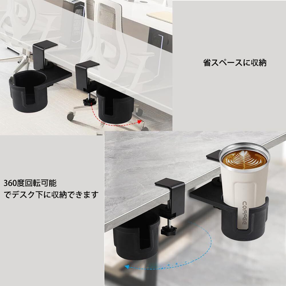ドリンクホルダー デスク ドリンクホルダー 机 カップホルダー デスク クランプ式 180度回転収納 取り付け簡単 スペース節約 テーブル収納 机の下に収納できる ブラック