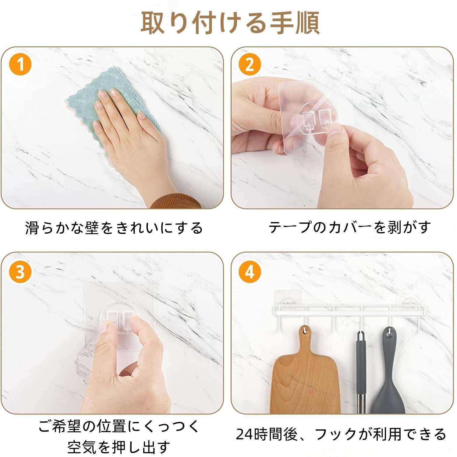 【取付け簡単】このキッチンツールフックは強力粘着テープで取り付け、壁に穴を開けたり、接着剤を塗ったりする必要なくて、壁を傷付けません。テープの保護フィルムを剥がし、キッチンツールフックをきれいで滑らかな壁に貼り付けて、48 時間後、キッチンツールフックを利用できます。PS:テープを外す方法:ヘアドライヤーでテープを加熱すると、数分後に跡を残さずにテープを剥がすことができます。