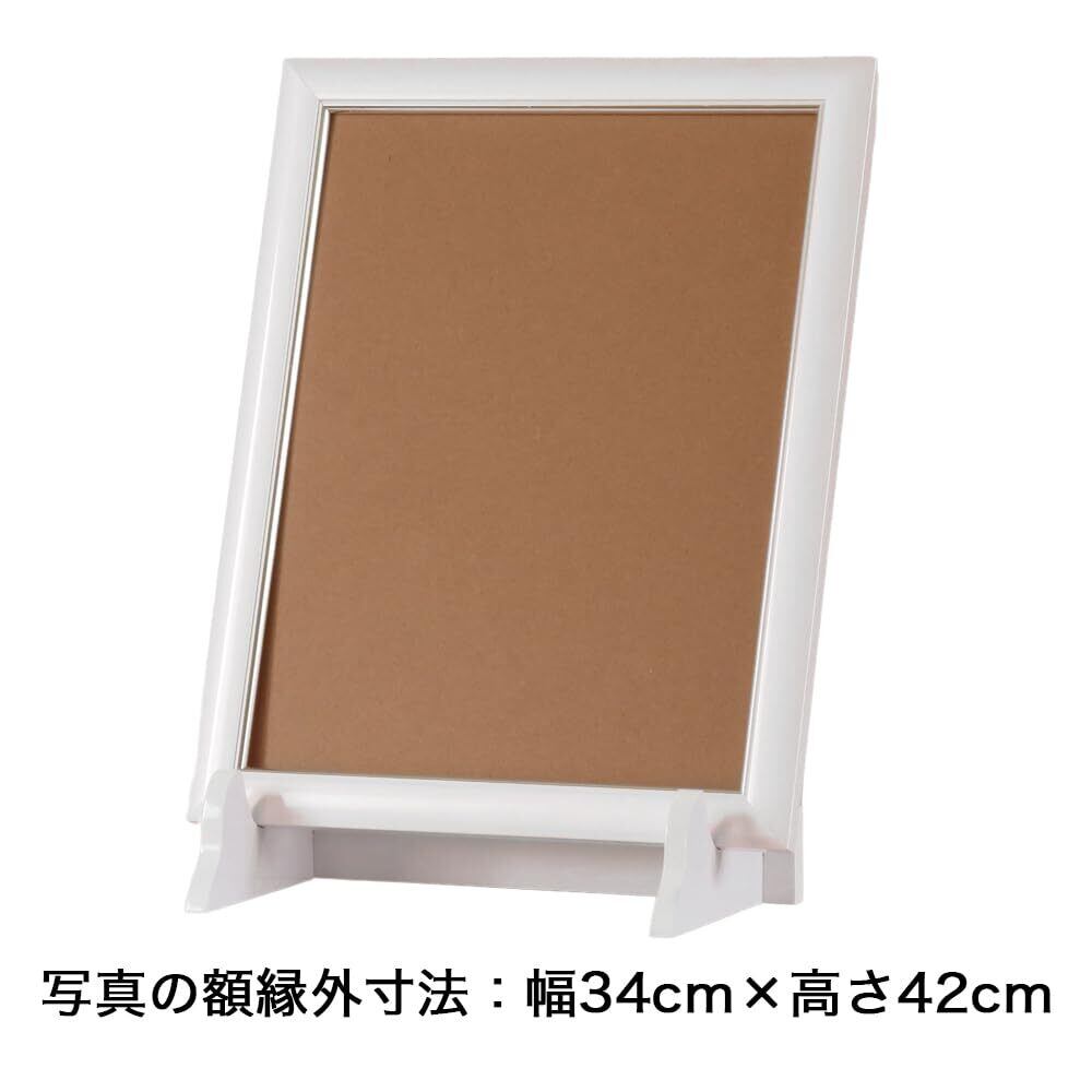 写真立て ホワイト 木製 組み立て 高さ28cm 白色 額縁立て 皿立て 遺影立て