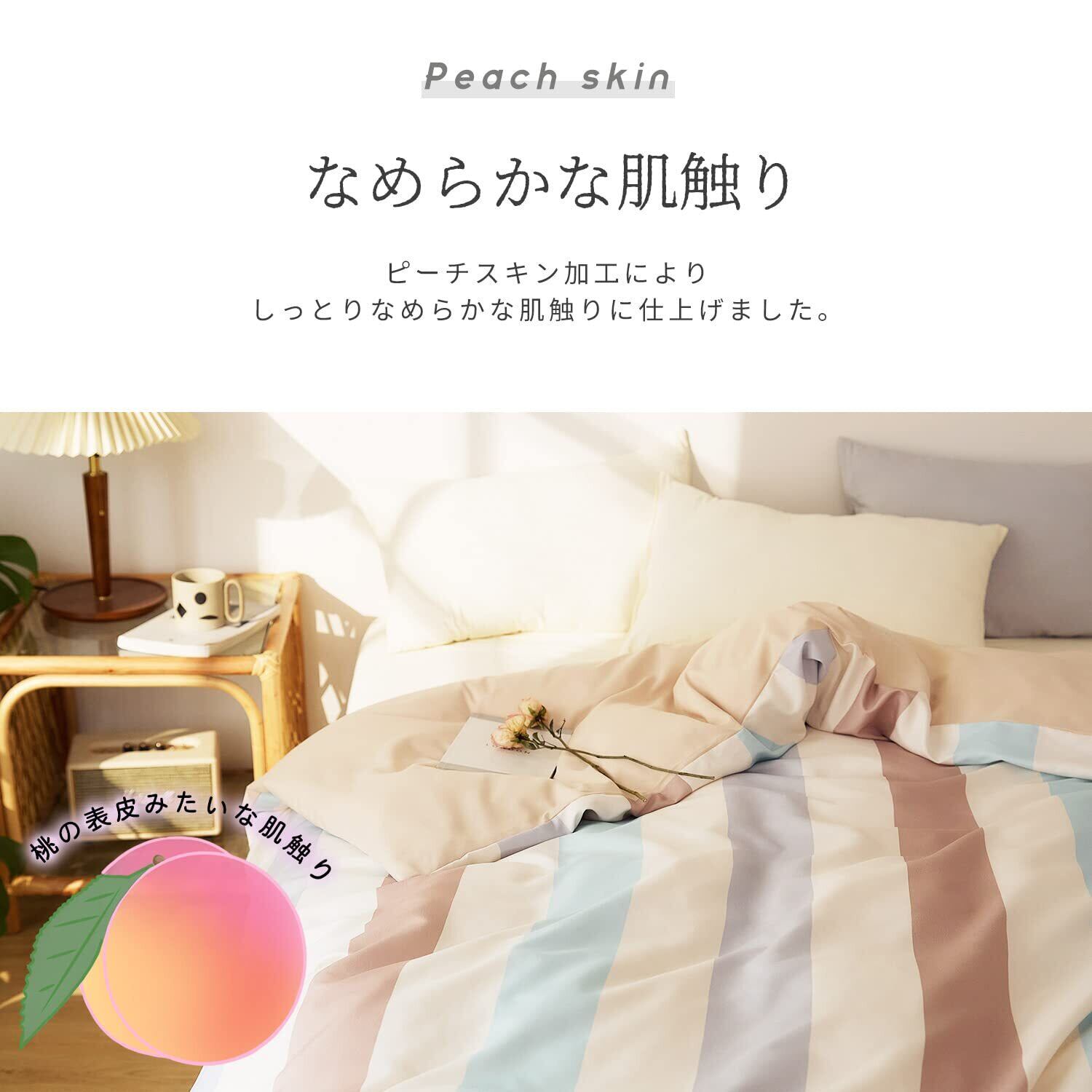 【なめらかな肌触り】生地の表面のにピーチスキン加工を施しました。とても細かい繊維を起毛、短く刈り揃えることにより、桃の表皮のような風合い豊かでなめらかな肌触りをお楽しみいただけます。