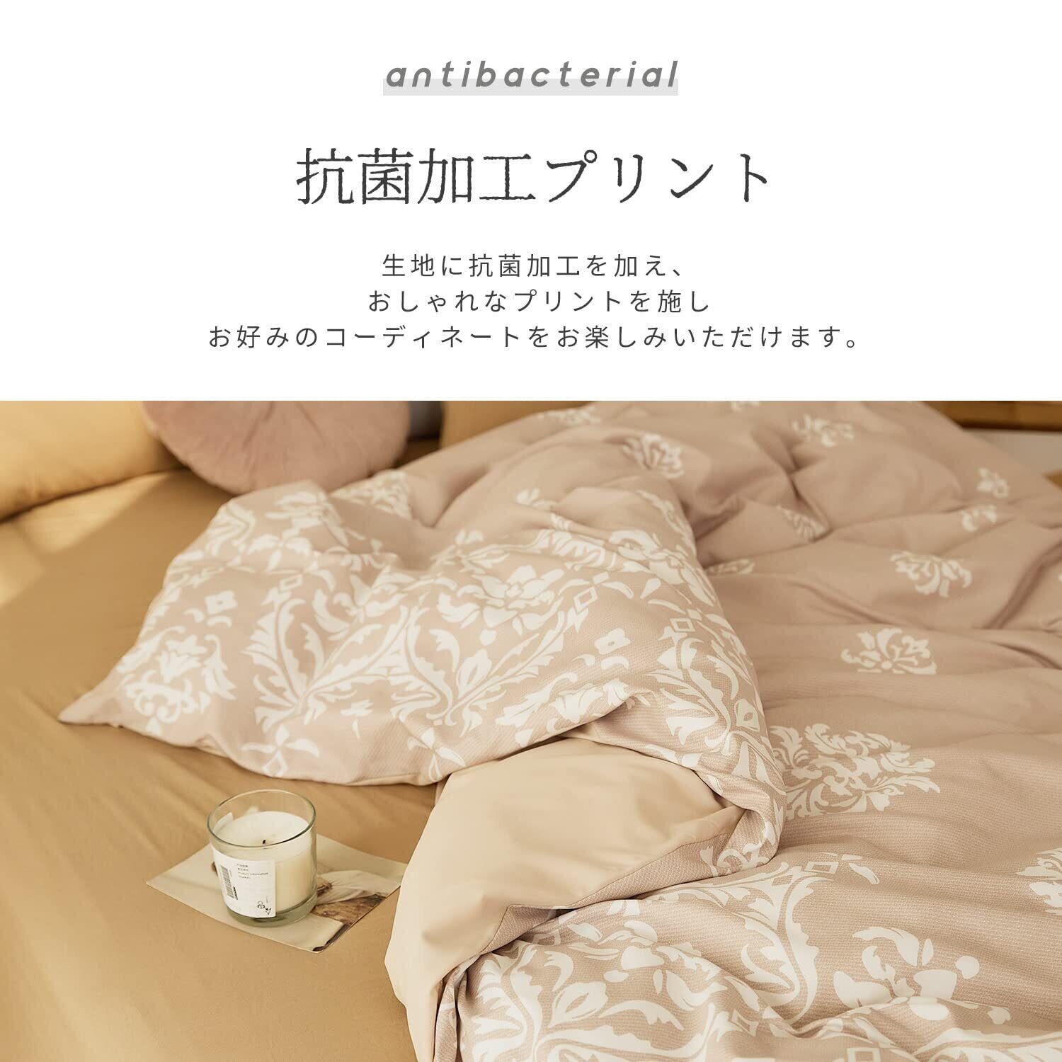 【抗菌加工】抗菌加工をした生地におしゃれなプリントを施しました。お好みの布団カバーに合わせてコーディネートをお楽しみいただけます。