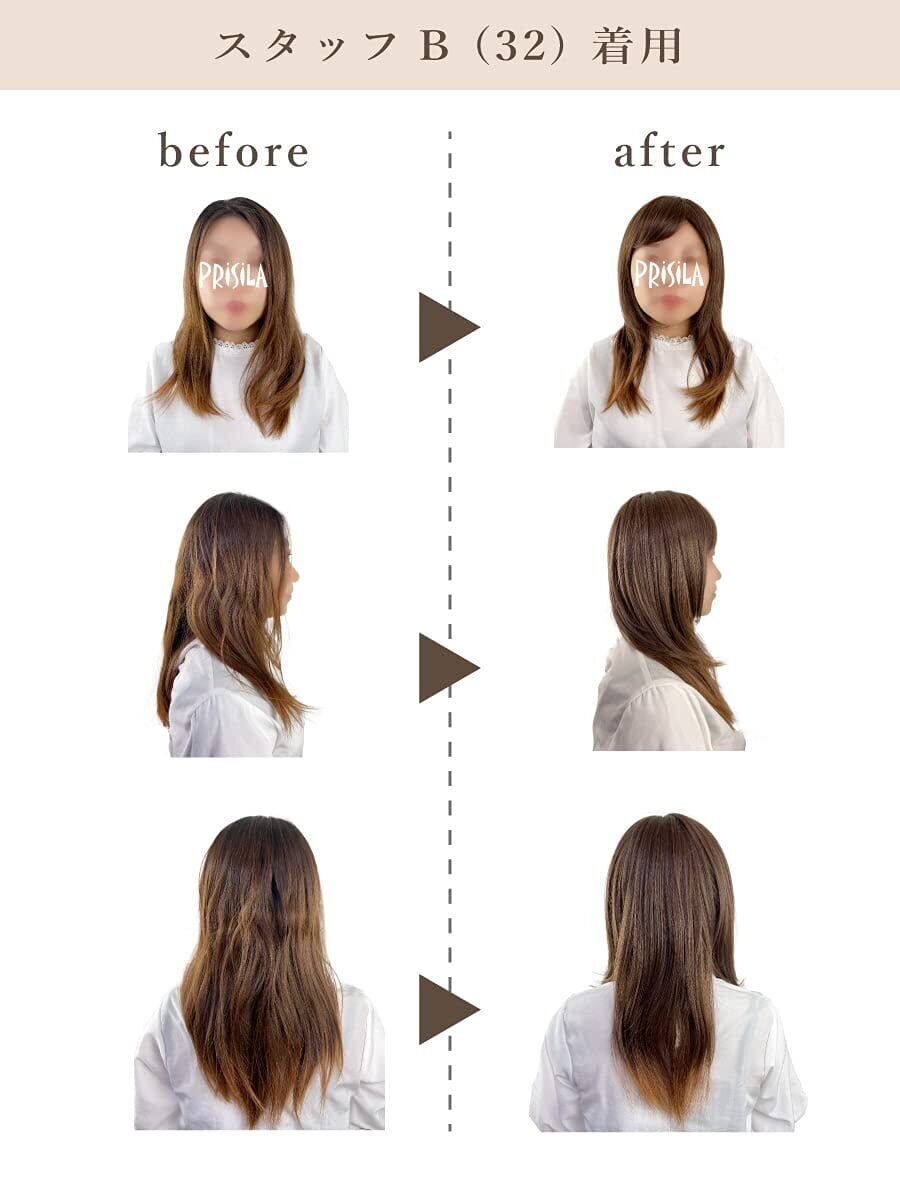 プリシラ 5分ウィッグニュアンスストレート耐熱 ナチュラルカラー GB-01-TNC つむじから前:約20cm、つむじから後:約42cm