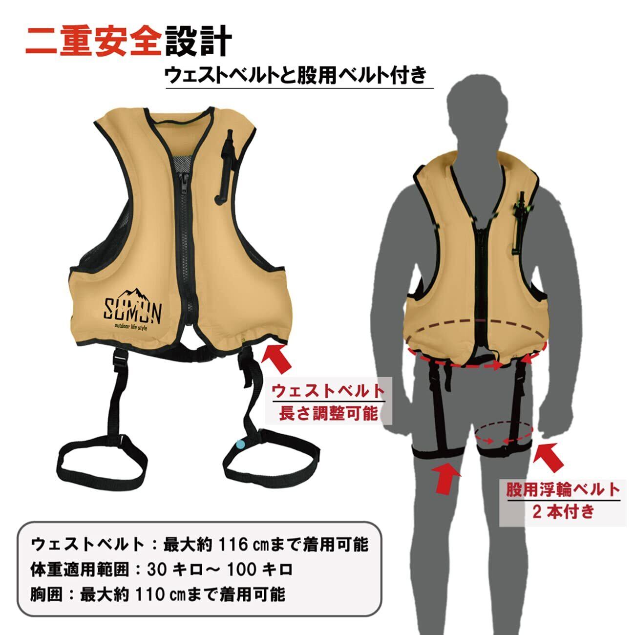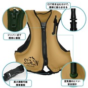 SUMUN ライフジャケット フローティングベスト 川遊び 釣り 海 シュノーケリングベスト 手動膨張式 エア 救命胴衣 マリンスポーツ 防災 台風 常備品 大雨 男女兼用 大人用