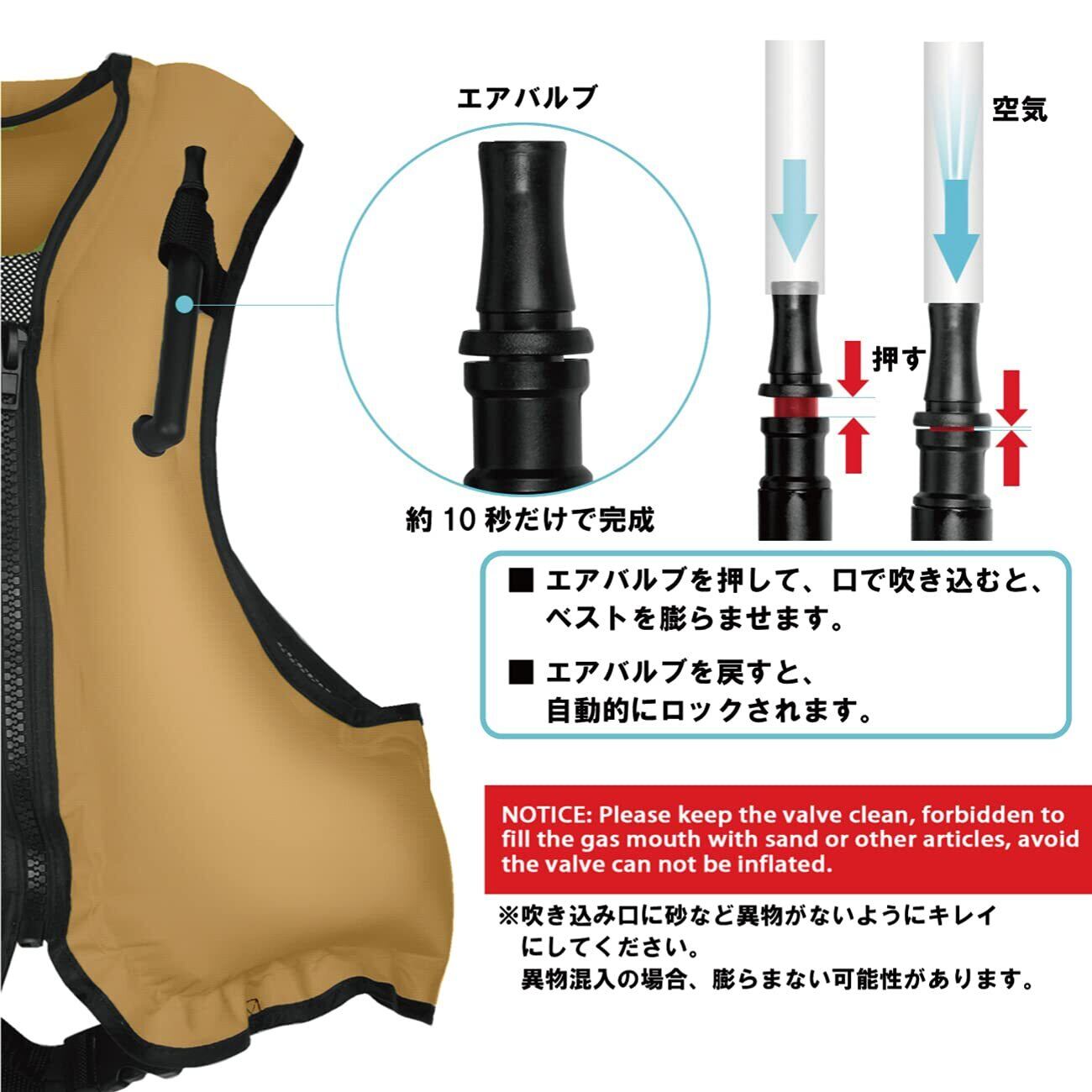 【簡単膨張】エアバルブに10~15秒程度吹き続いたら、ベストが簡単に膨らませるベストです。