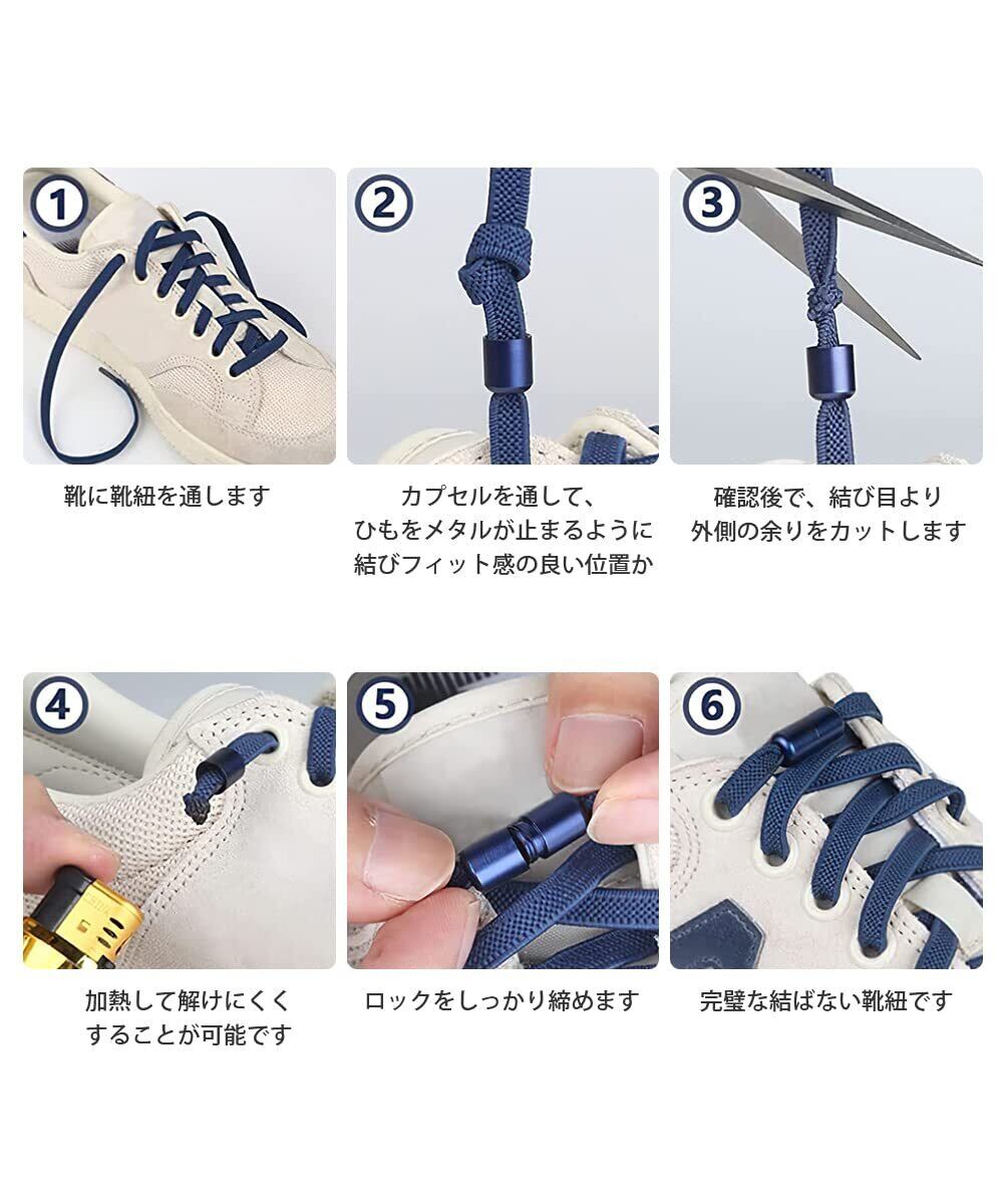 【カプセルタイプ&結ばない靴紐】 靴紐の先端にあるネジ式でしっかりと固定するため、外れにくい靴ひもです。丈夫な素材が採用されており、色落ちしにくいので長持ちします。伸縮製と耐久性に優れ、靴の脱ぎ履きが非常にスムーズですので、ジョギングやウォーキングに最適です。長時間使用しても快適なフィット感が続き、紐製とは違い汚れにくい!