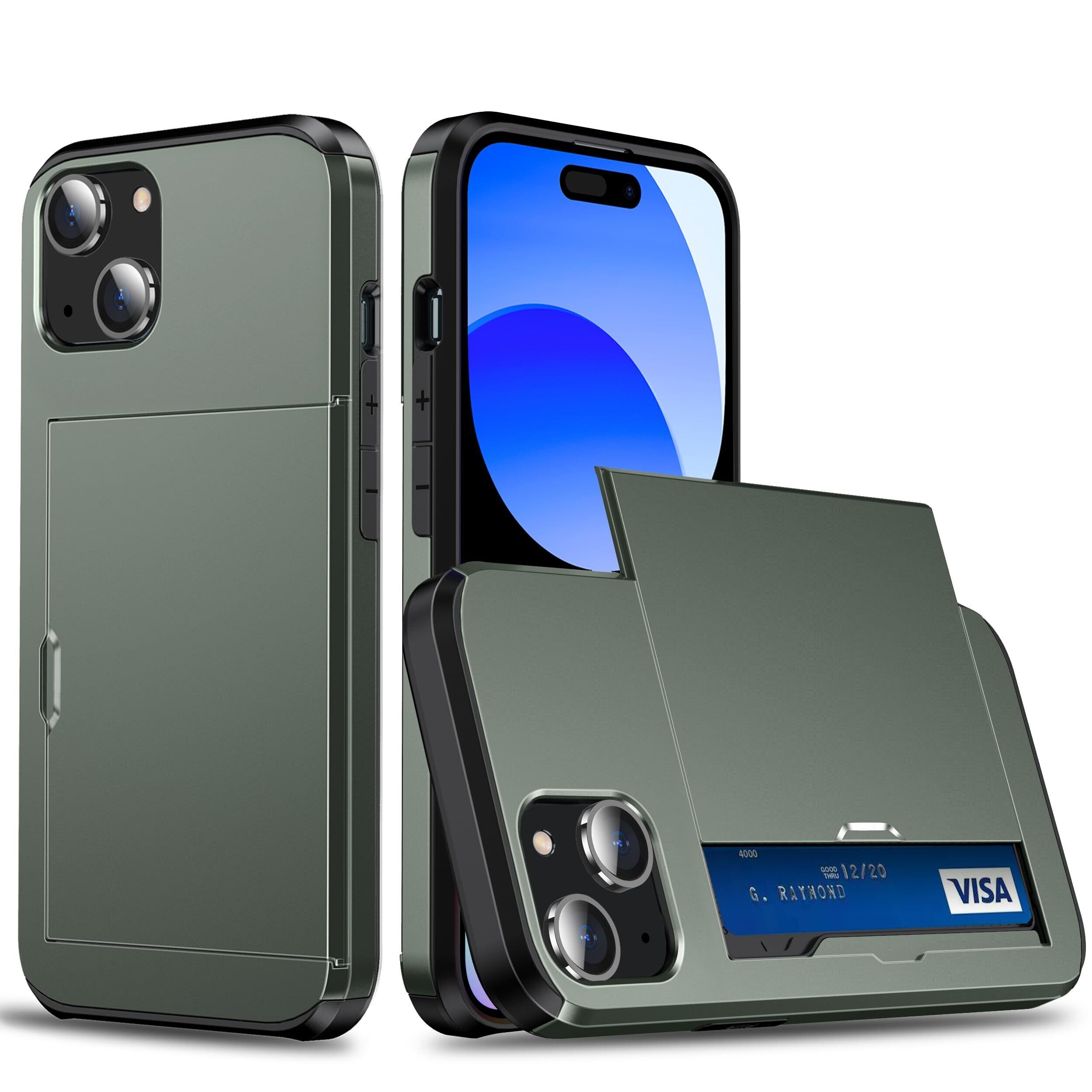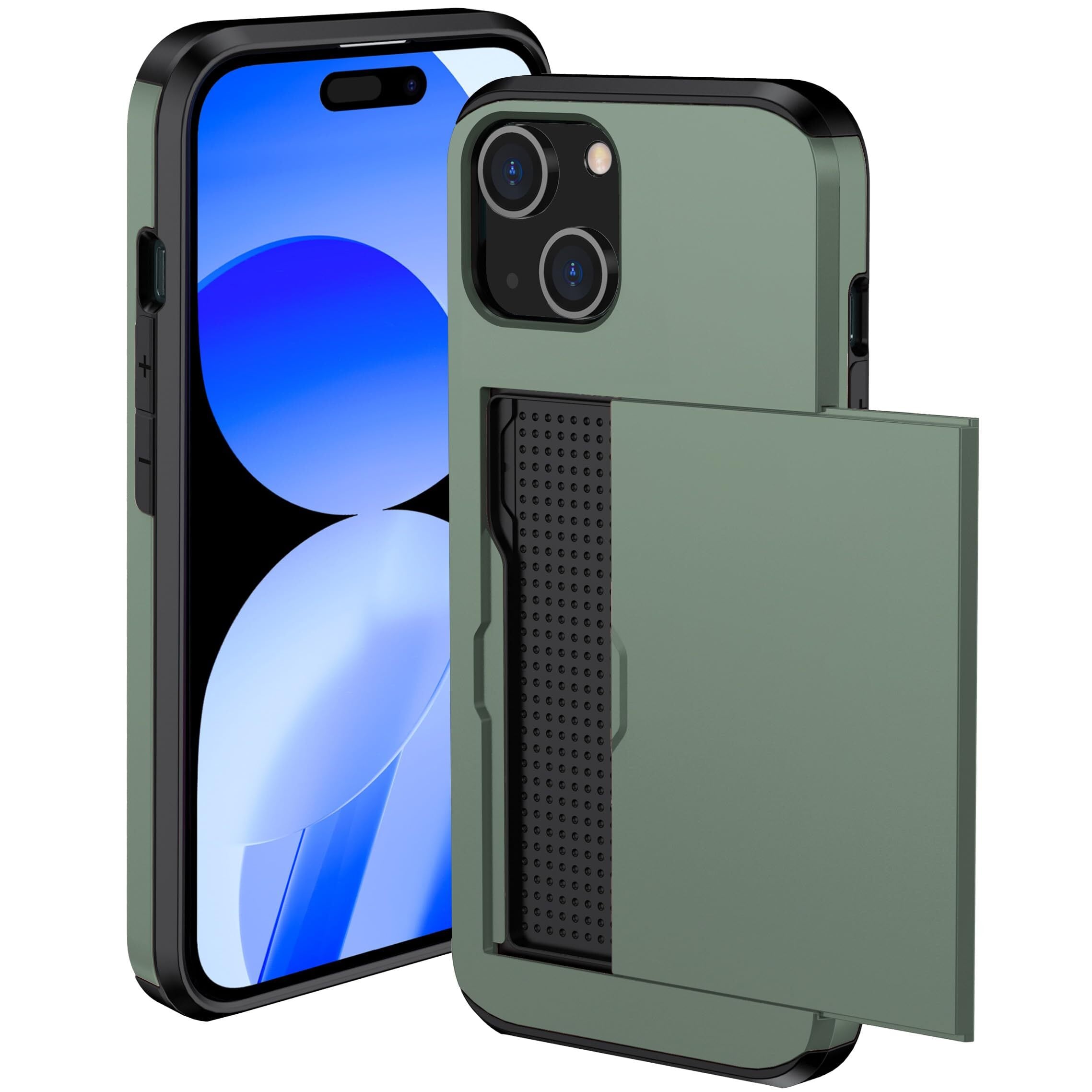 iPhone13 ProMax ケース カード 収納 収納ケース 背面 対応 耐衝撃 衝撃 吸収 防塵 ICカード カード入れ カードケース パスケース スライド アイフォン13 プロマックス スマホカバー スマホケース PhoneBeat (グリーン)