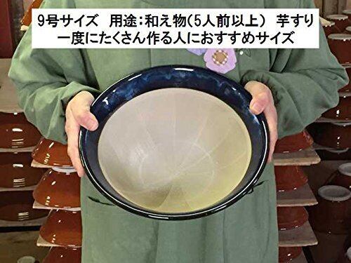 元重製陶所 石見焼 すり鉢 すりこ木 すりばちセット テーブルを傷つけない シリコン 底 9号 (直径28cm・すりこぎ付) 青なまこ すべり止め付 もとしげ 日本製