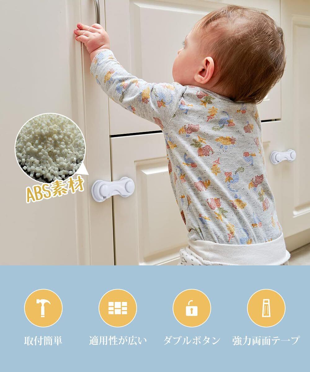 ドアロック とびらロック ベビーガード ワンタッチ ストッパー ドア/戸棚/引き戸/冷蔵庫引き出しロック 地震対策 防止 4個入り ホワイト