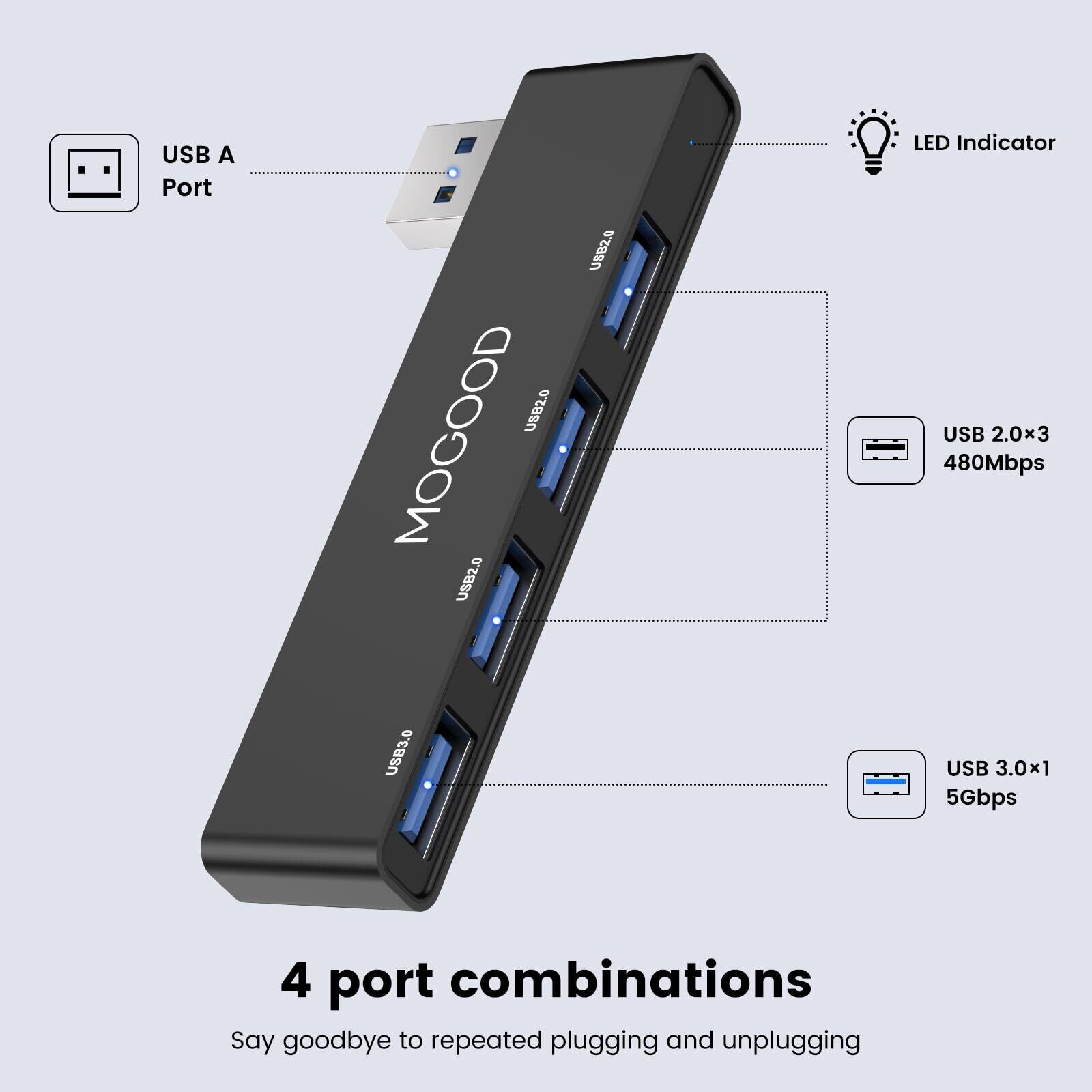 MOGOOD USBハブ3.0 USBスプリッタ ノートパソコン用USBハブノートマルチポートアダプタ USBポートエクスパンダノートパソコン、PC、MacBook、Mac Pro、Mac Mini、iMac、Surface Pro