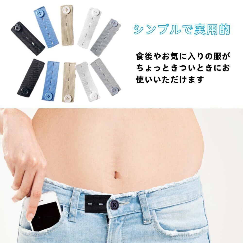 【パッケージ内容】ウエスト調整バックル10個、ブラック*2、ホワイト*2、ブルー*2、カーキ*2、グレー*2。
