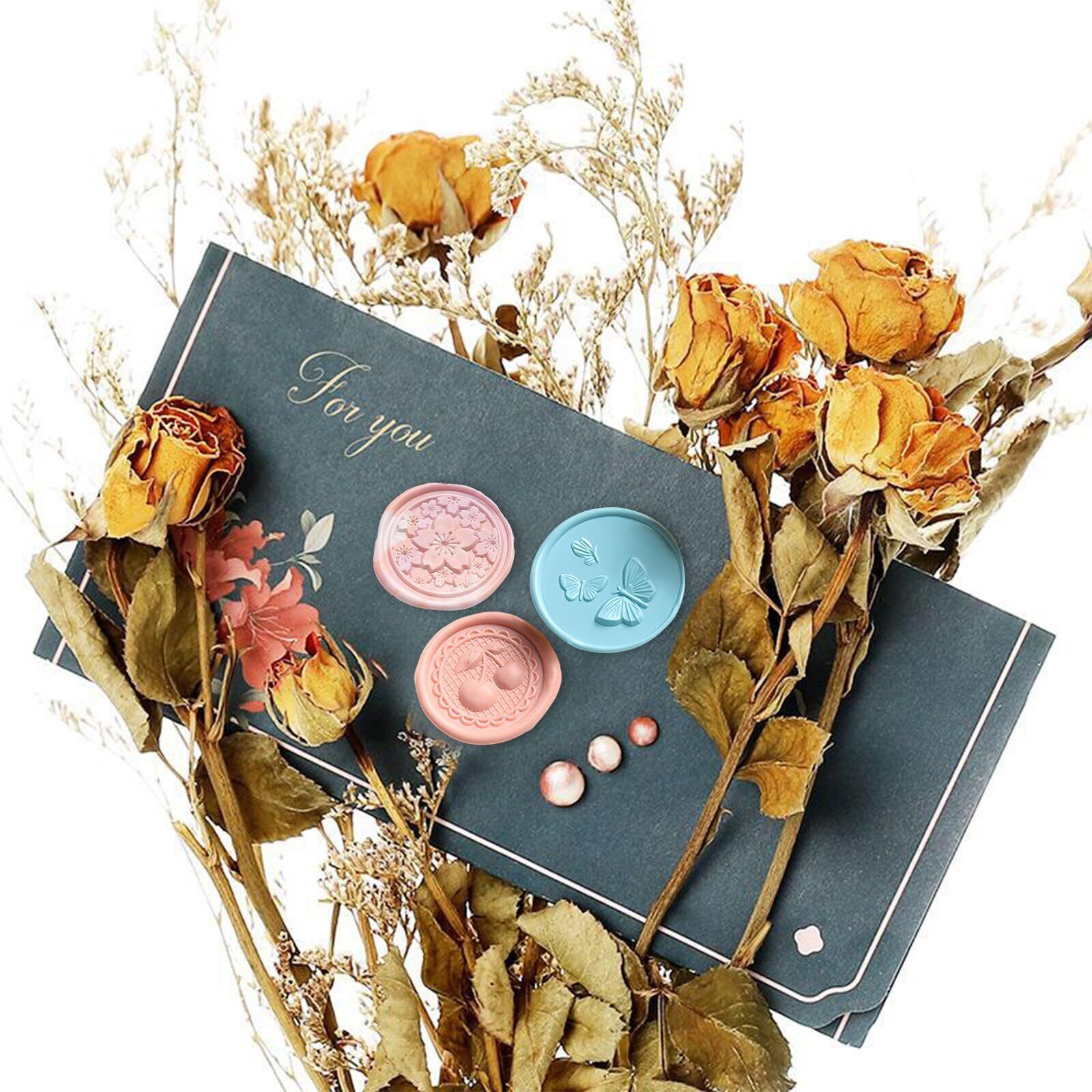 aninako シーリングスタンプ ヘッド 3個 チェリー 蝶 桜 シーリングワックス スタンプ 交換ヘッド 初心者 DIY 装飾 祝い 手紙 招待状 結婚式 記念日 誕生日 封筒 カード用 (チェリー+蝶+桜, 3個)