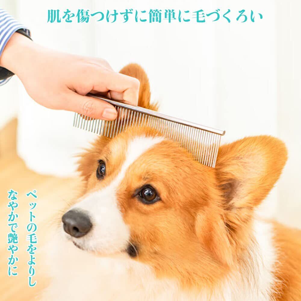 ペット用櫛 ステンレス針櫛 毛抜き櫛 脱毛修理櫛 犬猫用くし ペット用美容櫛 ヘアを整える 太いコーム&細いコーム ペット用品 静電気防止 シルバー 2個入り