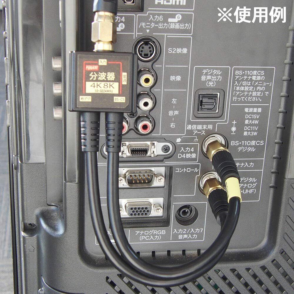 F-Factory 分波器 アンテナ分波器 4Cケーブル一体型 0.2m 金メッキ (4K8K / 地デジ/BS CS/CATV デジタル放送対応) ブラック 2個入り FF-4874BK-2P