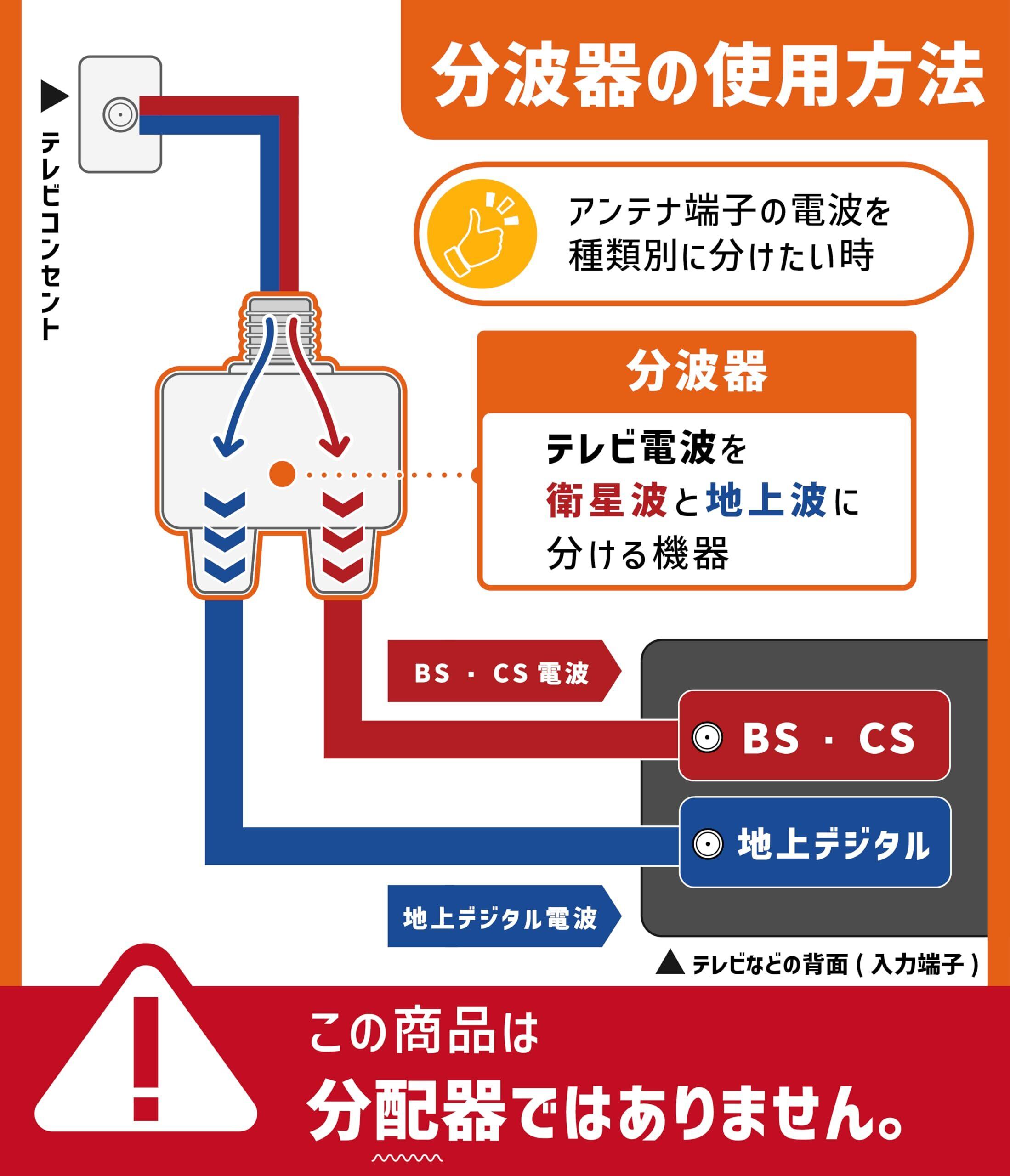 BSとCSの分波及び混合には使えません。屋内専用商品です。分配器ではありません。簡易パッケージになります。