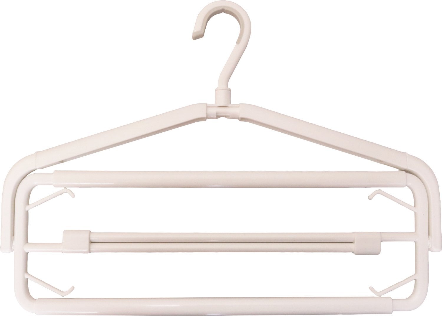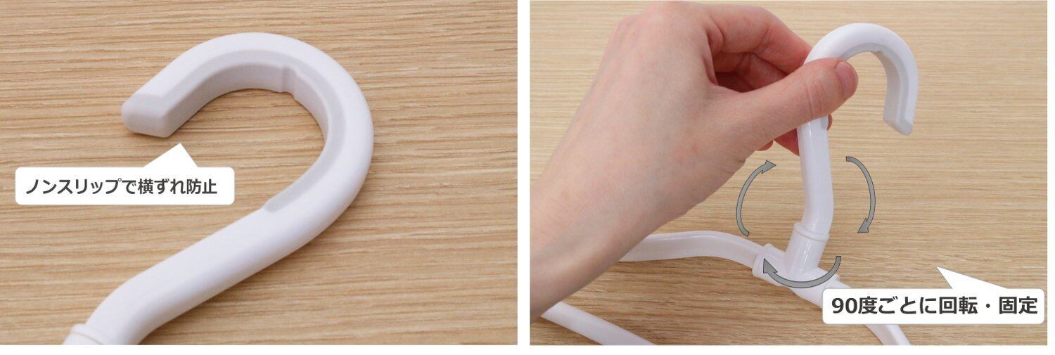 ◎バスタオル2枚が同時に干せるハンガーです。◎アームがワイドに伸縮して、スポーツタオルや通常のバスタオルなどサイズに合わせて干せます。◎フック部分は90度ごとに回転固定します。◎フック内側には風でハンガーが移動するのを防ぐノンスリップ加工が施されています。◎狭い干し場でも省スペースで干せます。◎室内干しにも便利です。◎白でシンプルなデザインがおしゃれ。◎使わないときは折り曲げてコンパクトに収納できます。