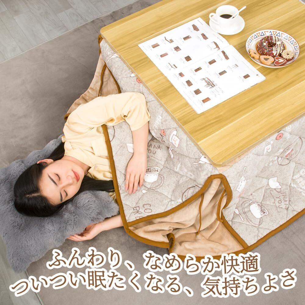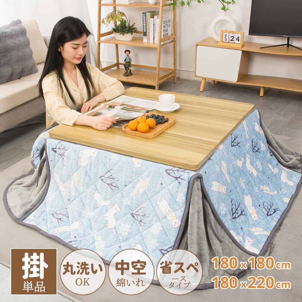 【楽しめる触り心地】表地・裏地とも、フランネル生地生地を使用しており、ふんわり柔らかな肌触り。北欧テイストやナチュラルなインテリアとも相性抜群。薄掛けタイプはこたつ周りをすっきり見せてくれ、こたつの中をぽかぽか暖めてやさしく包み込んでくれます。