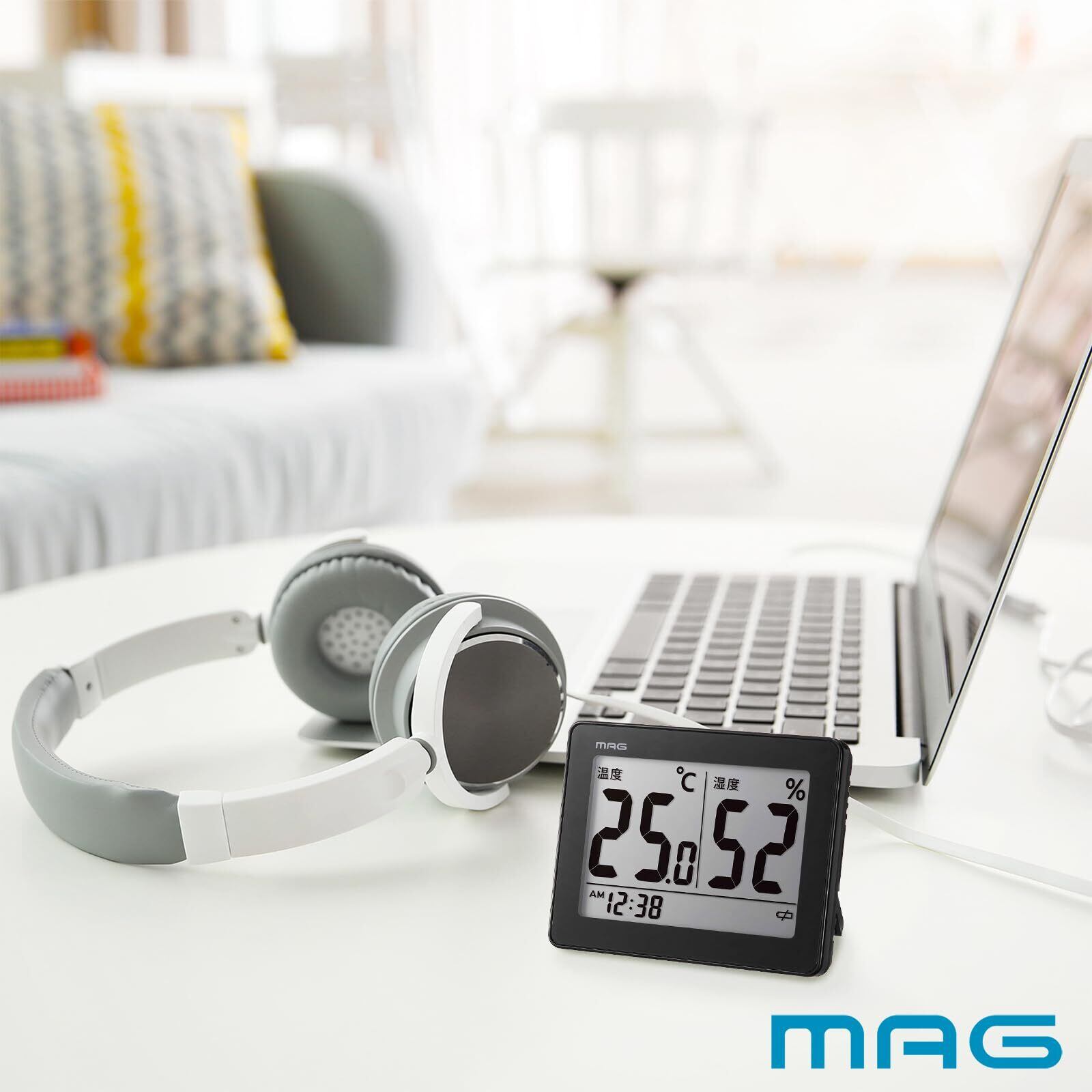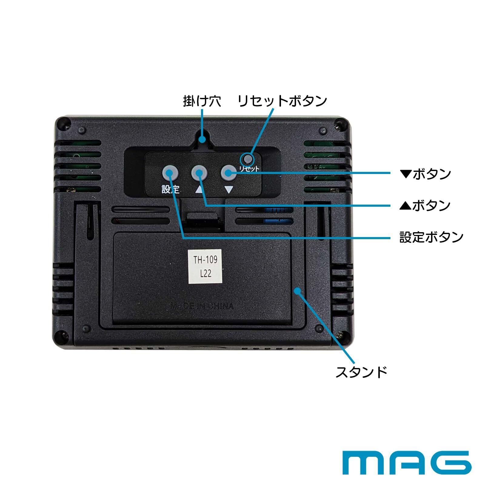 MAG(マグ) 温度計 湿度計 温湿度計 熱中症対策 大きくて見やすい デジタル ブラック スカイ 時計付き 置き掛け兼用 TH-109BK-Z