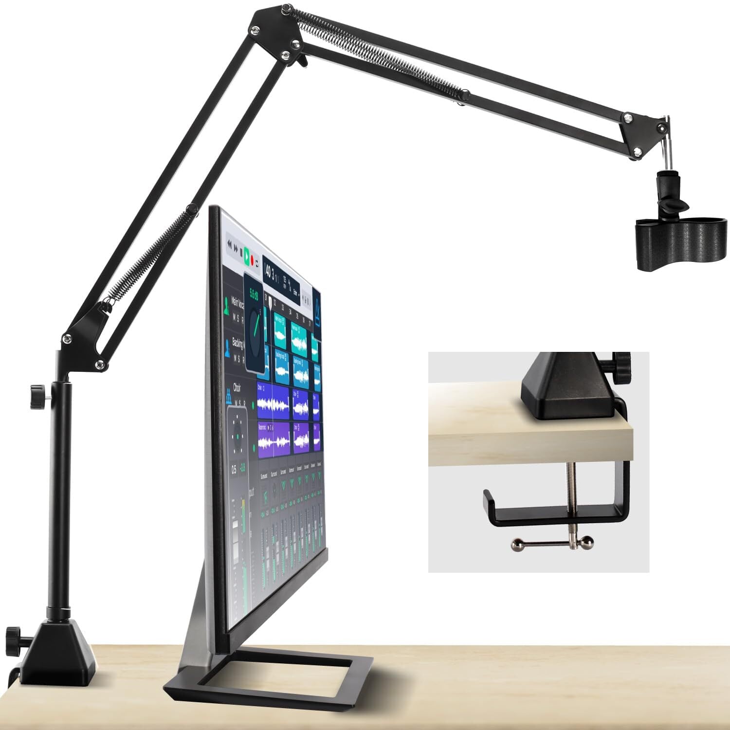 KTSOUL マイクスタンド卓上 マイクアーム スタンド バネあり 高さ上下調節仕様 固定クランプ強化 コンデンサーマイク用 マイククリップホルダー 実況 収録 配信 (マイクアームスタンド)