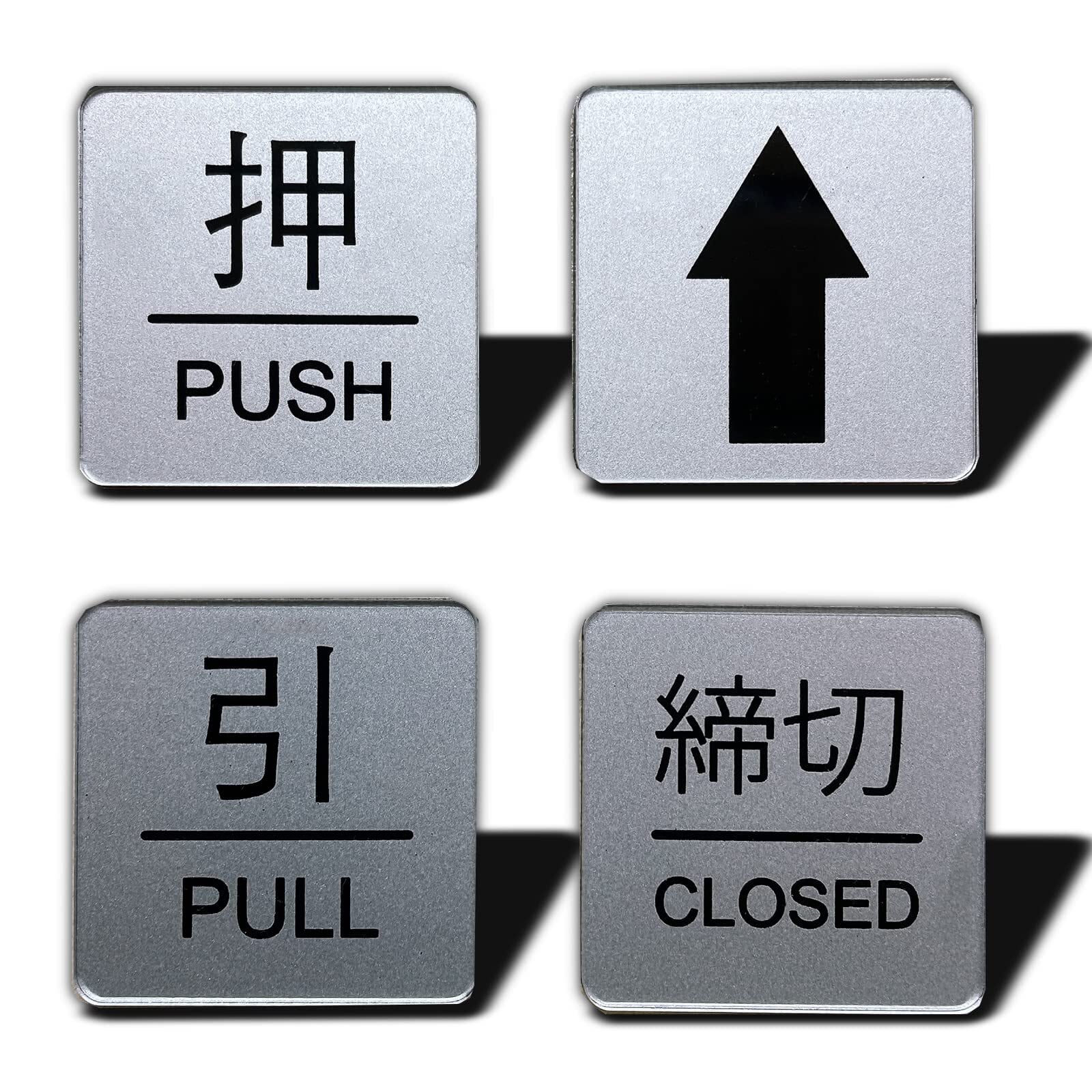 Seagron 押す引く 締切 矢印 ドアプレート 両面テープ付き PULL PUSH シルバー色 2㎜ アクリル製 おしゃれ 4枚入り (四角)…