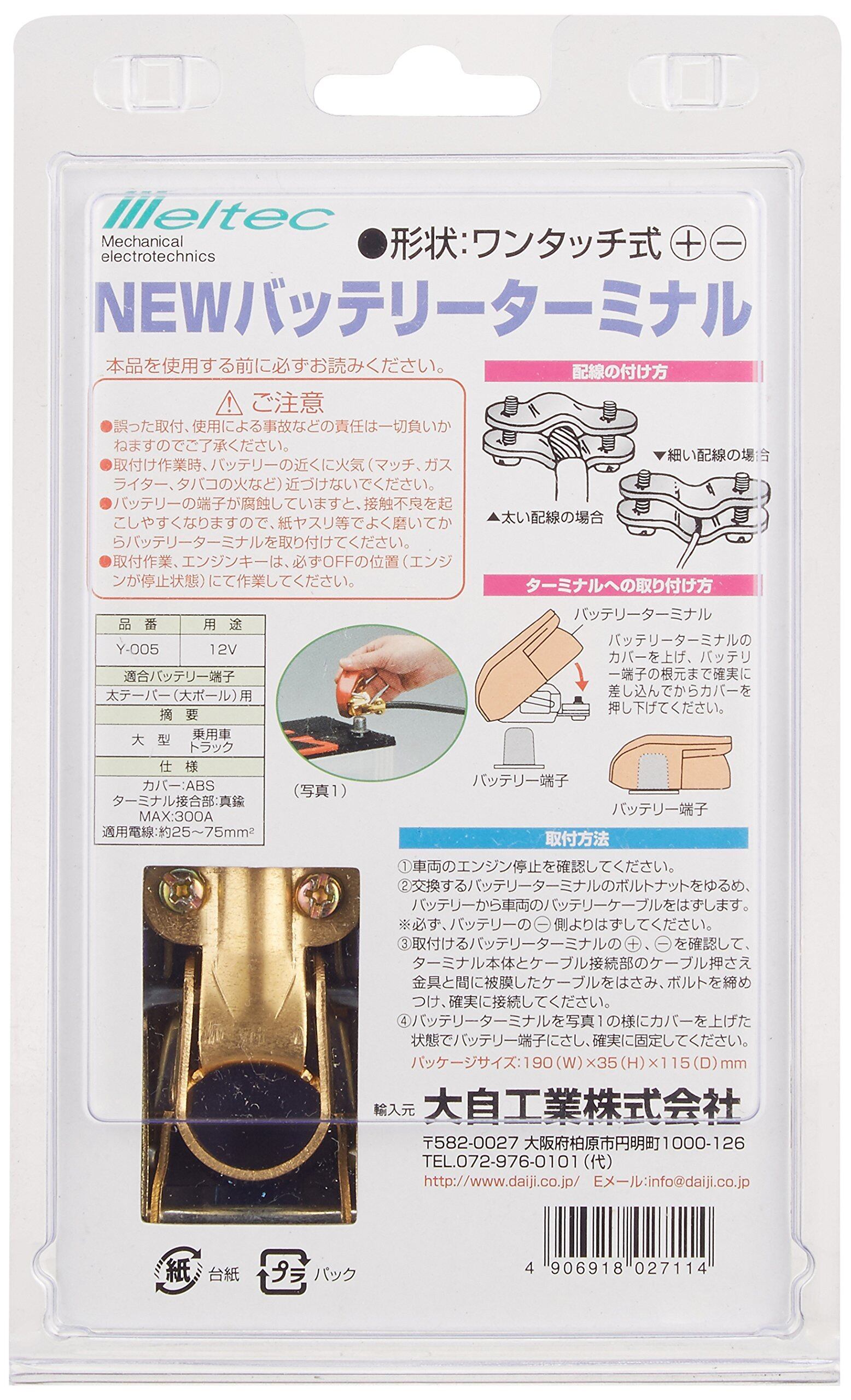 メルテック(meltec) 車用 バッテリーターミナルセット 大ポール(D端子) ワンタッチ式(+)(-) Meltec Y-005