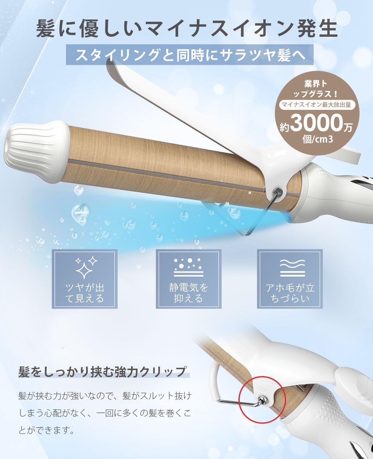 BAYATA コテ 32MM ヘアアイロン カールアイロン シルクプロコテ【瞬間水分蒸発しない・140℃〜220℃・マイナスイオン・海外対応】5段階温度調節 全髪質対応 急速立ち上がり 1時間自動オフ 100V-240V海外対応