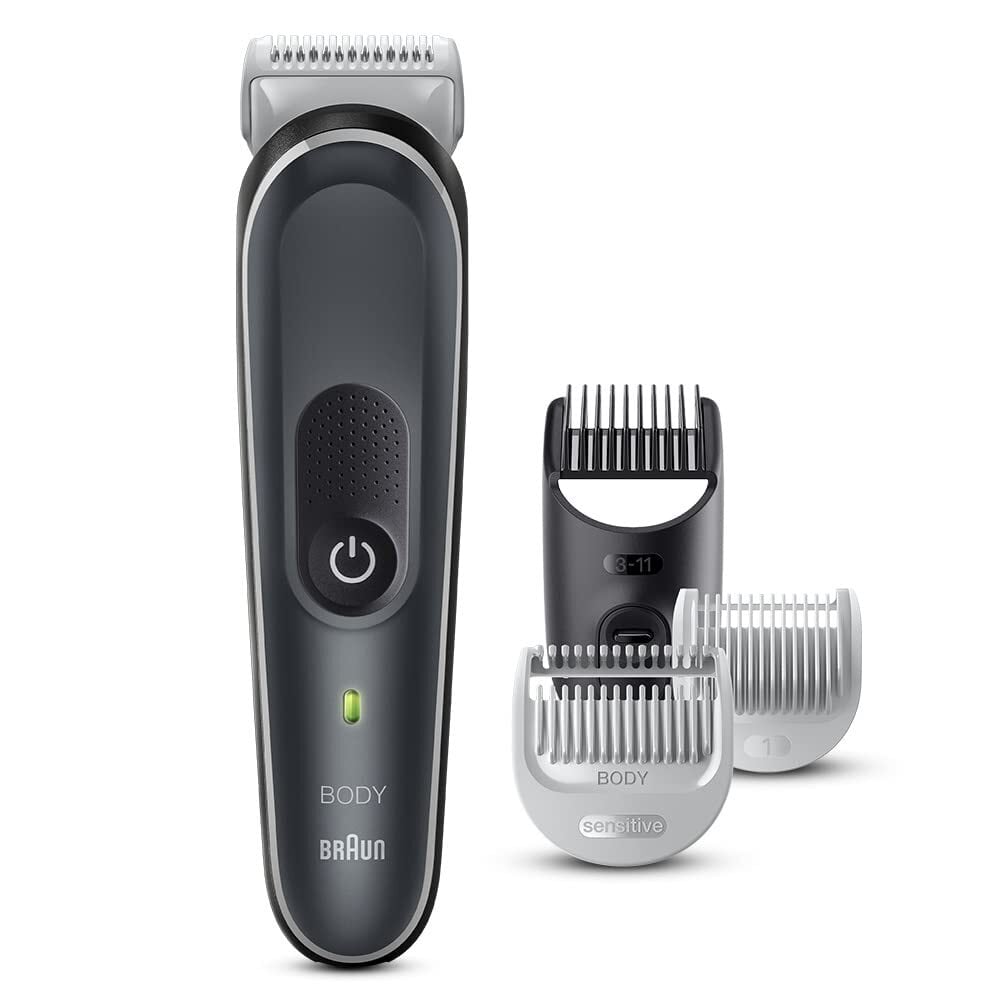 ブラウン ボディグルーマー 5。わき毛、胸毛、すね毛、腕毛、腹毛、ふとももの毛からデリケートゾーンまで、全身のムダ毛処理に。肌へのダメージを最小限に抑える 肌に優しい設計。肌の安全と快適さを追求した設計。肌の切れや傷を最小限に抑える。同梱物 : ボディグルーマー、アタッチメント 3種。広範囲の体毛を素早く処理したい方に