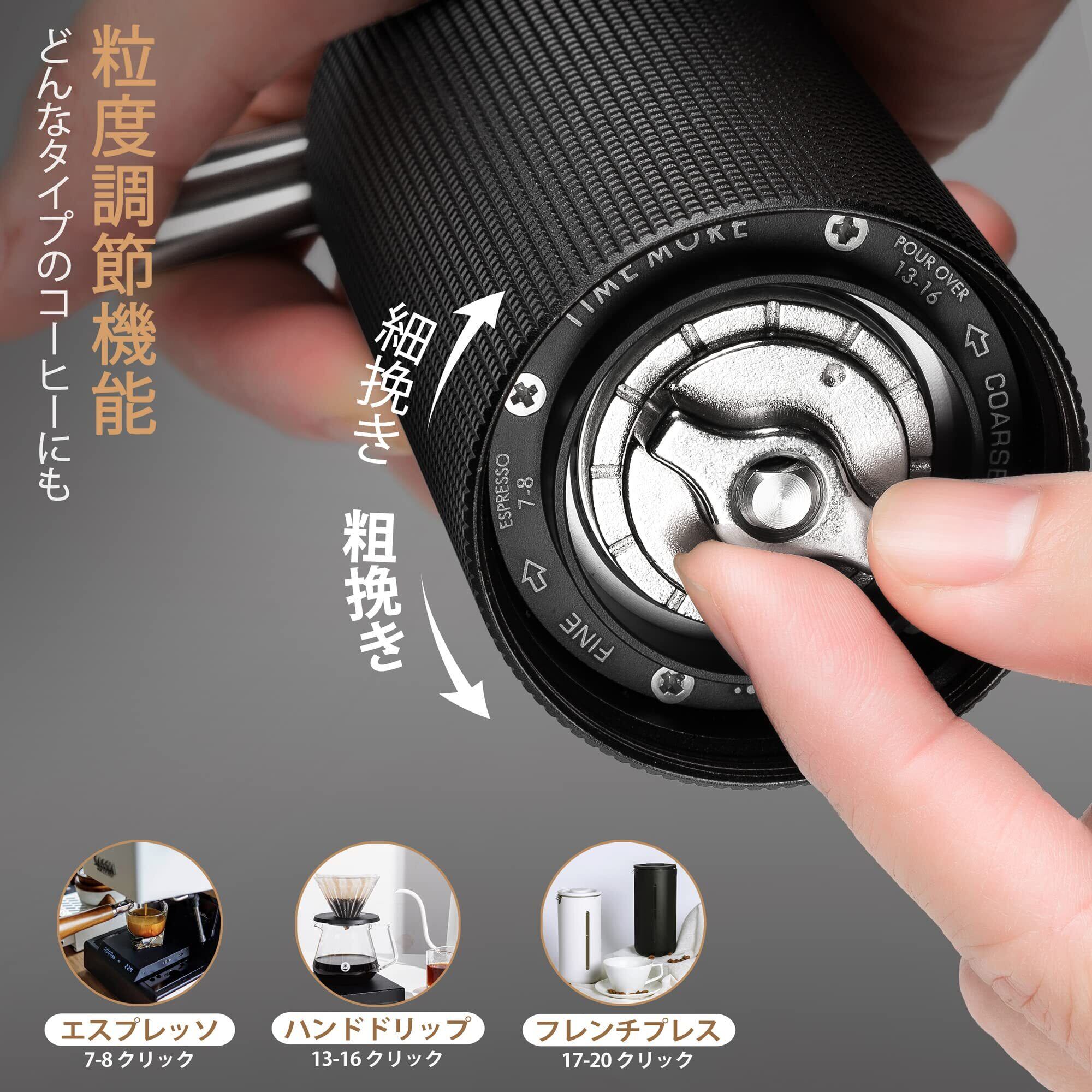 TIMEMORE コーヒーミル 手動 タイムモア C3 Max Pro 折り畳み式ハンドル 容量30g ステンレス臼 粗さ調整可能 ブラック