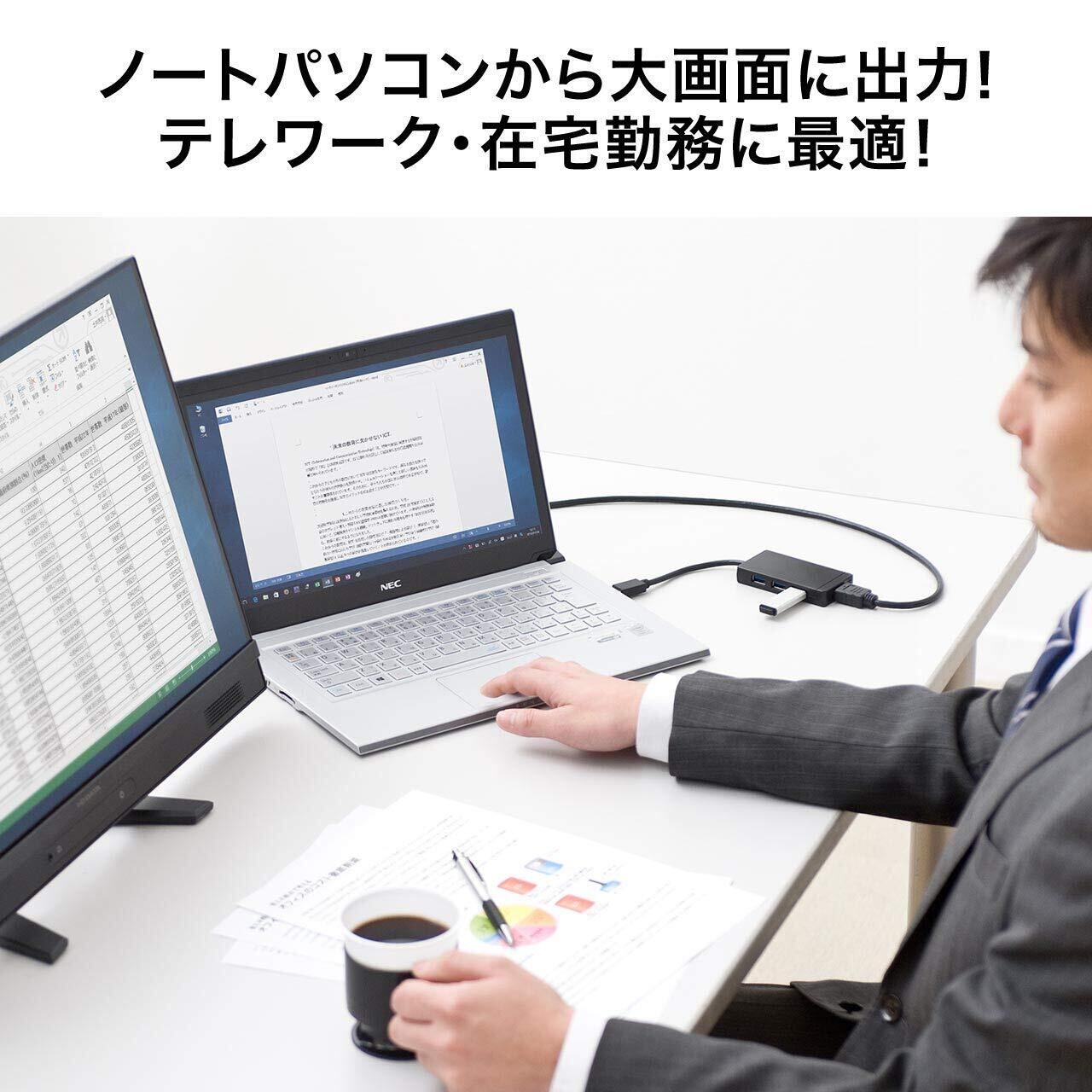 サンワダイレクト USB3.0 → HDMI 変換アダプタ USB3.0×3ポート 拡張・複製対応 ディスプレイ増設 在宅勤務 1080p対応 400-HUB027